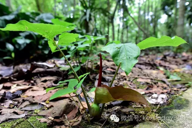 犁头尖,天南星科植物,林下或路边常见。犁头尖有很多种,这种较为常见,但丝毫不影响它的不寻常。紫红色的佛焰苞花序中,一根花柱如老鼠尾巴一样高高翘起。趴在地上看它,有一种特别的美感。人类太伟大了,不妨蹲下来,甚至跪下来观看一下大自然,你会发现一个不同的世界。