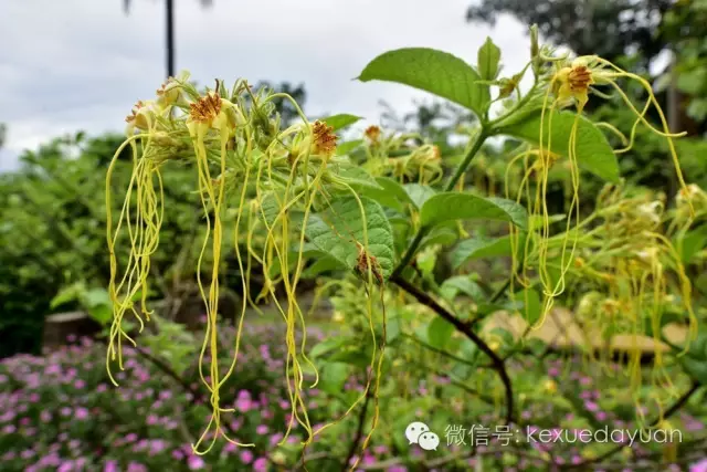 箭毒羊角拗,夹竹桃科植物,每年五月底开放。箭毒羊角拗被称为柔美的剧毒植物,受伤后会流出白色乳汁,能要人命。不知是谁说的,美丽的东西是有毒的。反过来,有毒的东西往往也是美丽的。箭毒羊角拗的花瓣特化陈丝状,挂在空中,分外妖娆。