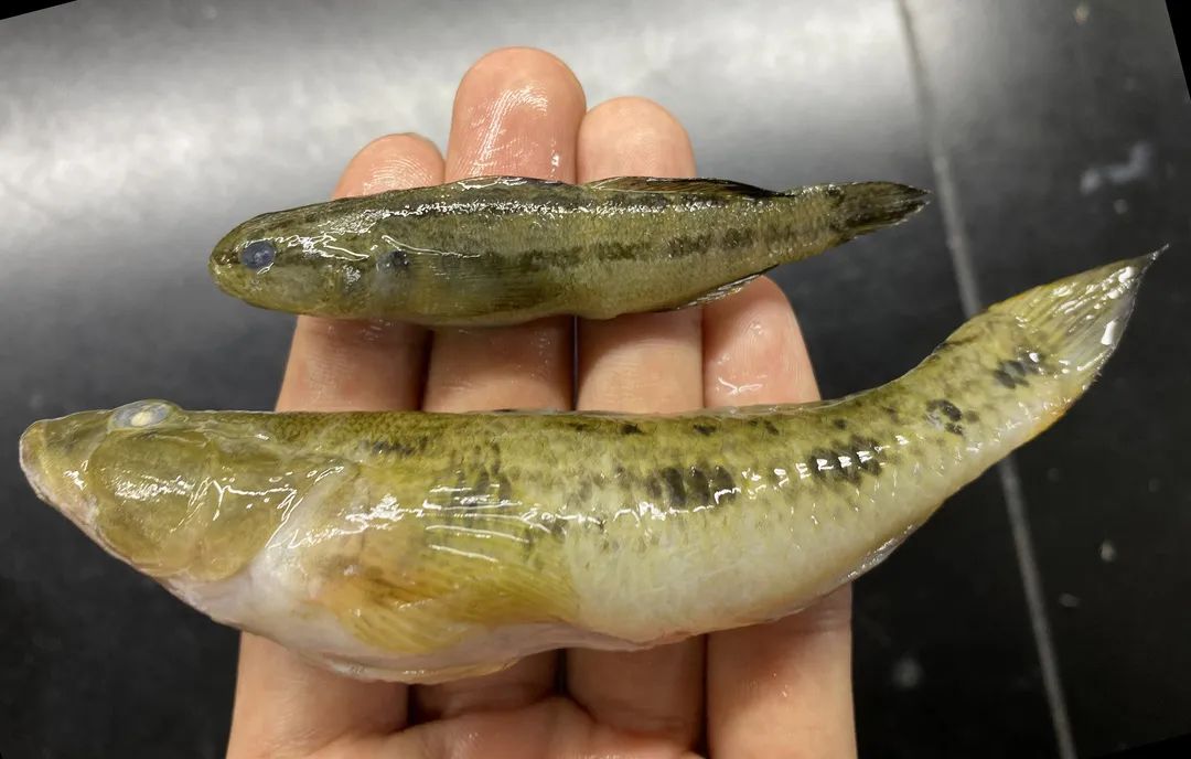 比起纹缟虾虎鱼(上),这尾舌虾虎鱼(下)就显得很肥壮了。图片:浪里小海豚