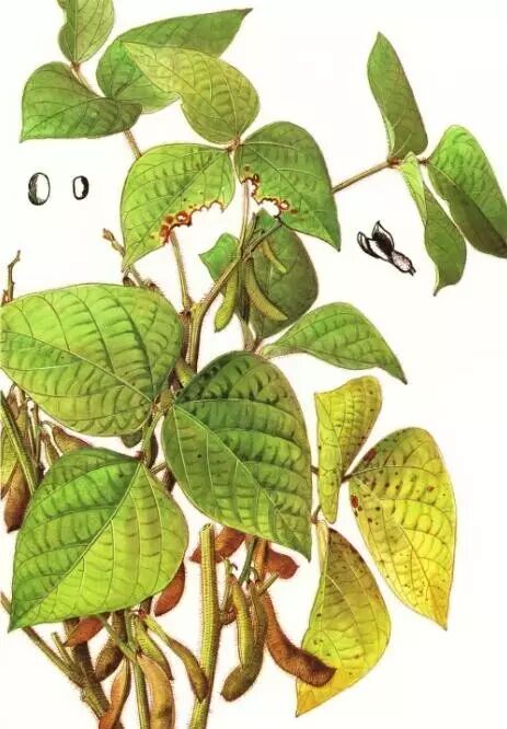 一年生草本;茎粗壮,直立,或上部近缠绕状,密被褐色长硬毛。叶通常具3小叶;小叶纸质,顶生一枚较大,侧生小叶较小,斜卵形。总状花序,花紫色、淡紫色或白色。荚果肥大,长圆形,稍弯,下垂,黄绿色,密被褐黄色长毛;种子2-5颗,种皮光滑,颜色因品种而异,种脐明显,椭圆形。花期6-7月,果期7-9月。原产我国,全国各地均有栽培,亦广泛栽培于世界各地。大豆是我国重要粮食作物之一,已有五千年栽培历史,现知约有1000个栽培品种。内容来源:《中国植物志》。