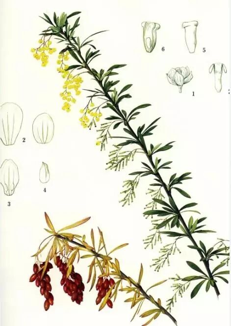 落叶灌木;老枝灰黄色,幼枝紫褐色,具条棱;茎无刺,或具单一或三分叉的刺。叶纸质,倒披针形,全缘,近无柄。穗状总状花序具8-15朵花;花黄色,花瓣倒卵形或椭圆形,具2枚分离腺体。浆果长圆形,红色,长约9毫米。花期5-6月,果期7-9月。分布于我国北方多省区,生于山地灌丛、砾质地、草原化荒漠、山沟河岸或林下,海拔600-2300米。根和茎人药,可作黄连代用品。内容来源:《中国植物志》。
