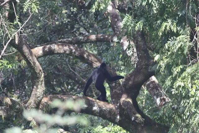 一只西黑冠长臂猿雄性背影。拍摄者:熊世明