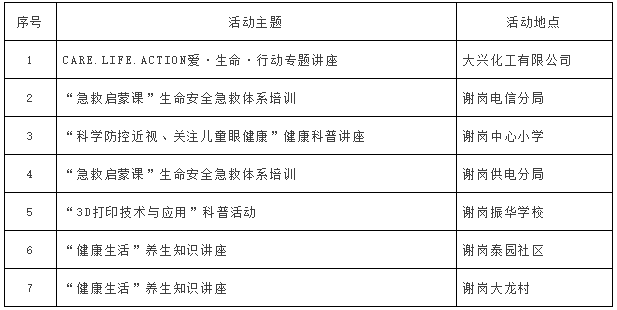 公众急救知识和技能的普及率是现代社会文明的重要标志。目前,我国公民急救知识的普及率不足5%,目击者对心搏骤停患者实施心肺复苏(CPR)的比例仅有15%-30%,成功率不到1%。CARE.LIFE.ACTION爱·生命·行动专题讲座、“急救启蒙课”生命安全急救体系培训讲座,围绕急救的基础知识及技能培训、科学防控新冠疫情等内容,分别在东莞市大兴化工有限公司、谢岗电信分局、谢岗供电分局顺利开展,进一步提升了职工群众、机关干部应对突发事件的应急救护能力,为安全生产保驾护航。