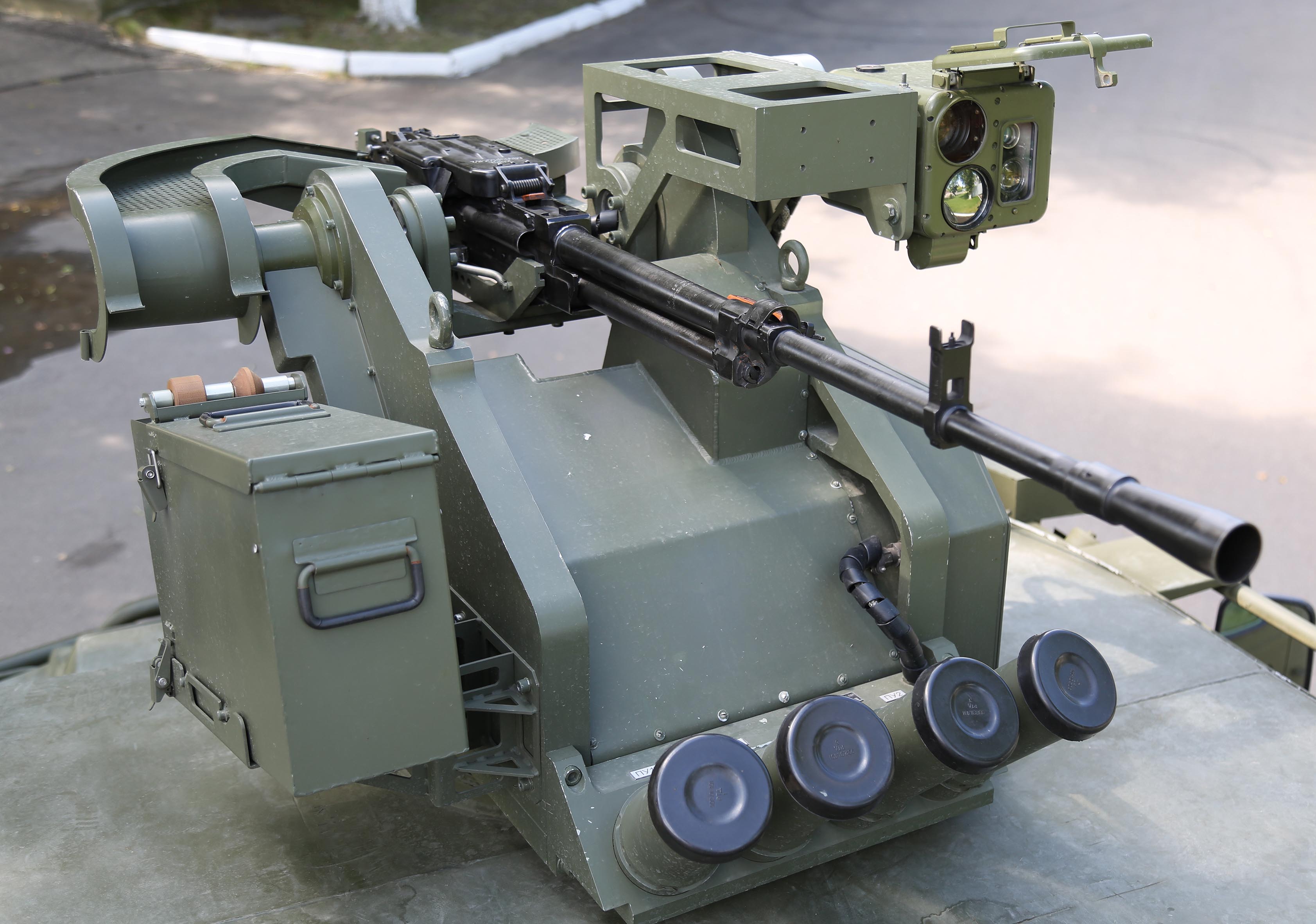 俄罗斯已首次成功测试了“弩”DM遥控武器站夜间打击移动目标的能力。“弩”DM总重约250千克,主武器为6P49“科尔德”型12.7毫米机枪,射速达600发/分,携弹量450发。前部装有4具烟幕榴弹发射器。