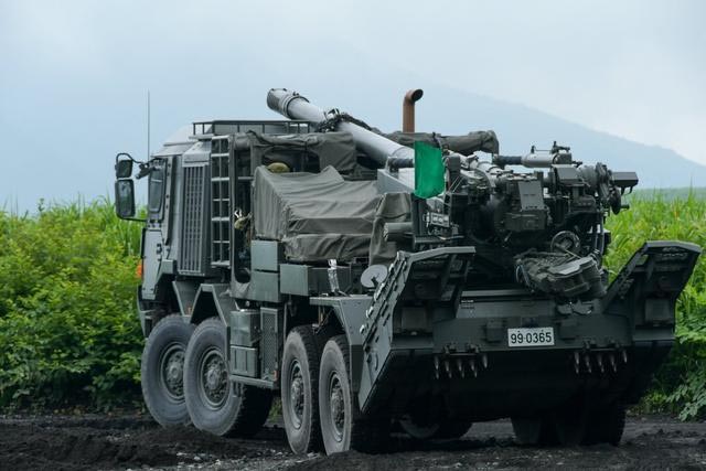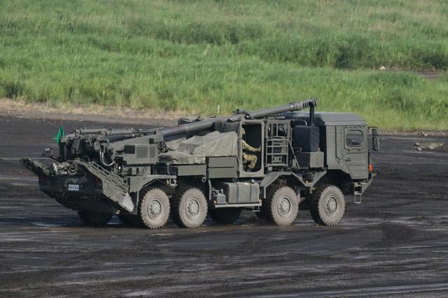 在这次演习中,观众的视野中还出现了长久以来神龙见首不见尾的新装备——19式轮式155毫米自行火炮(19式装輪155mm自走りゅう弾砲)。