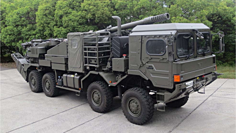 车体后方设置了炮座,其上装有日本制钢所生产的52倍口径155毫米加农榴弹炮。尾部是驻锄和火炮操作平台一体式结构,装有液压收放装置,在射击时放下为火炮提供支撑,放下后由炮手手动展开折叠着的操作平台。