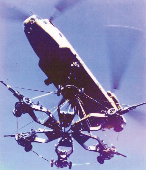 直升机凭借其直上直下因而成为各国军队的重要装备,尤其是运输直升机,除了在机舱内可以运输各种物资和人员外,也可以通过外挂的方式吊运不同的物资,例如我们图集里的各种火炮。
