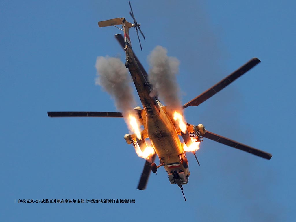 ▲ 伊拉克的米-28武装直升机发射火箭弹。
