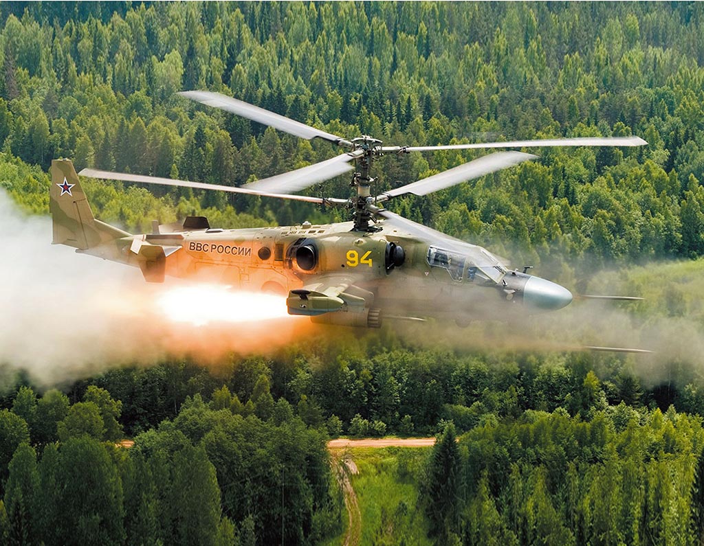 ▲ 俄罗斯的卡-52武装直升机发射火箭弹。