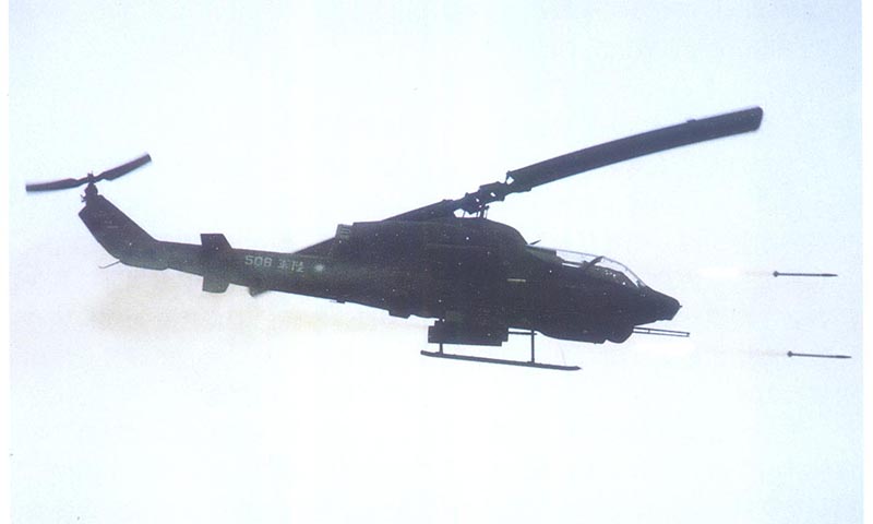 ▲ 台军AH-1W武装直升机发射火箭弹。