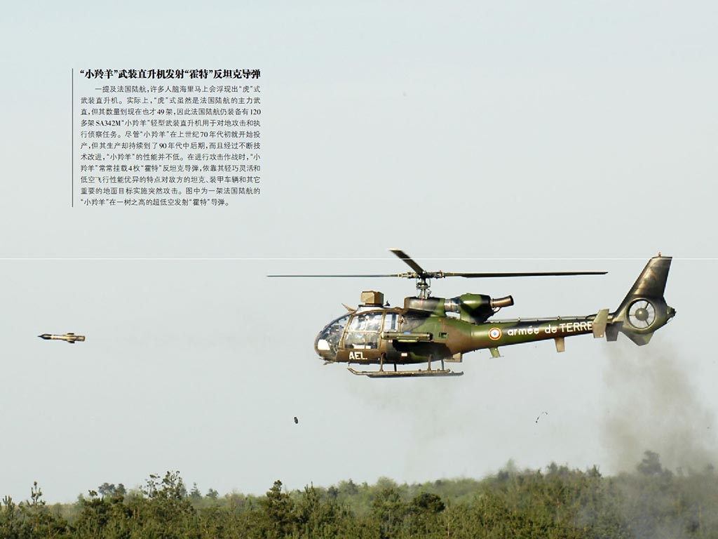 ▲ “小羚羊”武装直升机发射“霍特”反坦克导弹。