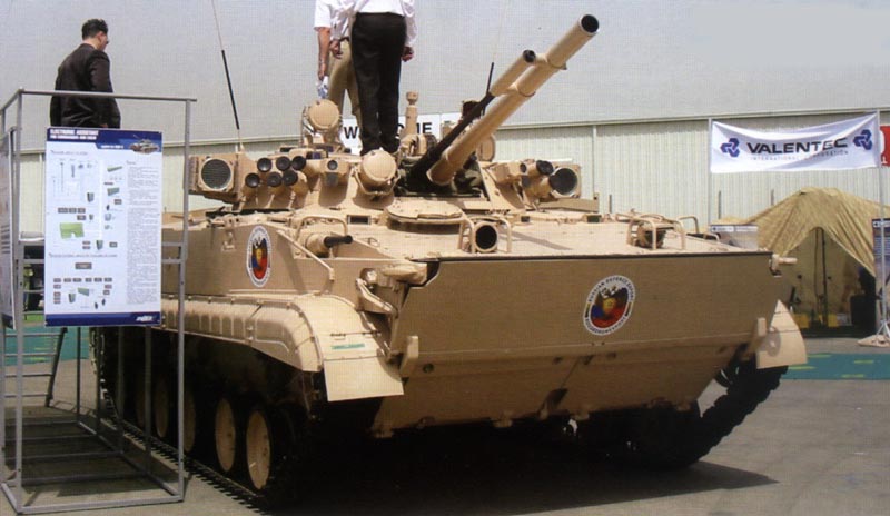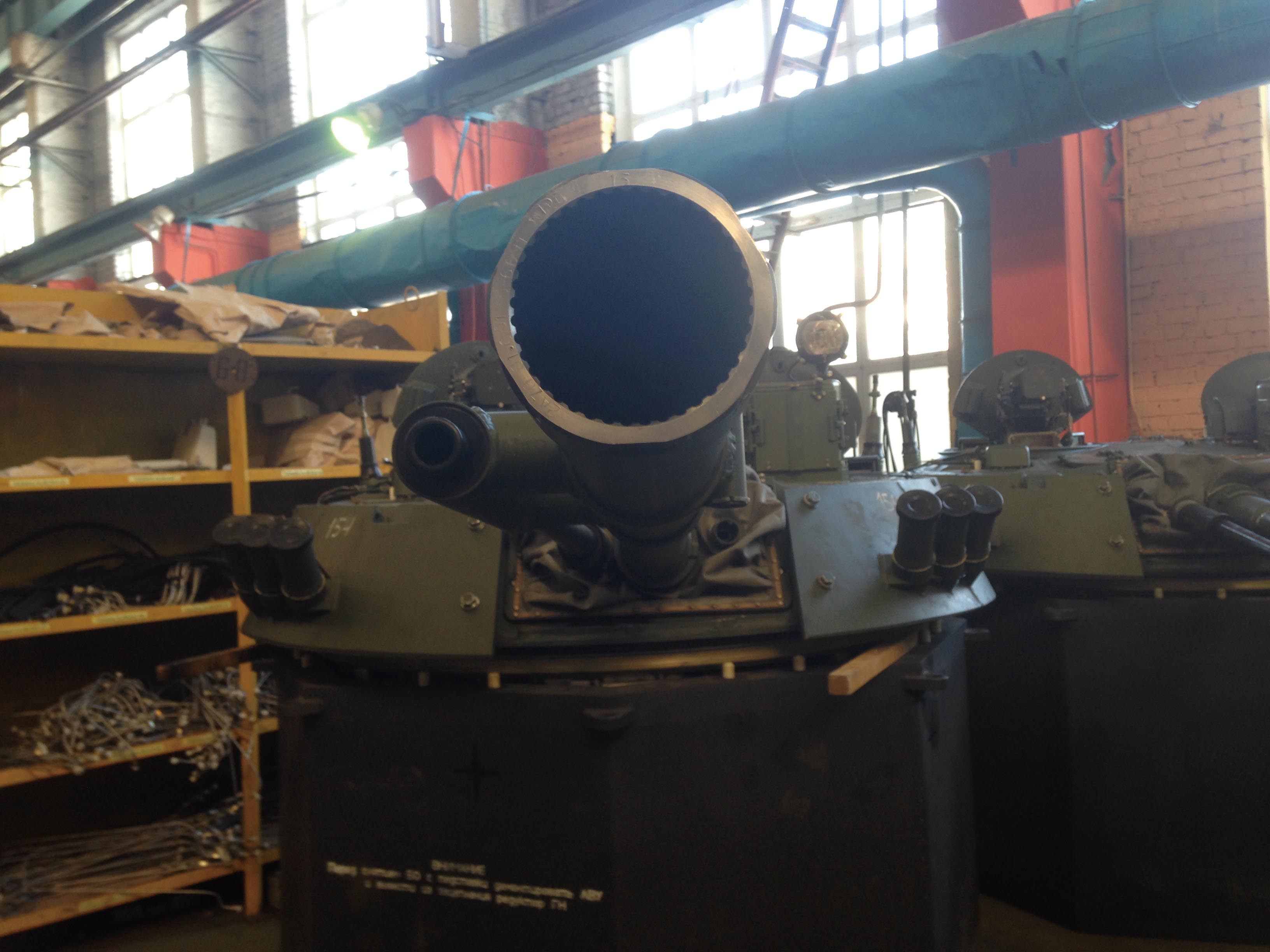 ▲ 装配完毕的BMP-3步兵战车的炮塔,可以清楚的看到2A70型100毫米火炮的膛线,旁边的则是2A72型30毫米机关炮。