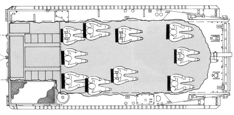 ▲ BMP-3步兵战车内部示意图,可以看到动力-传动装置后置。