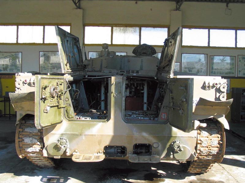 ▲ BMP-3步兵战车后视图,可以看到车底的两个排水推进器的舱口。