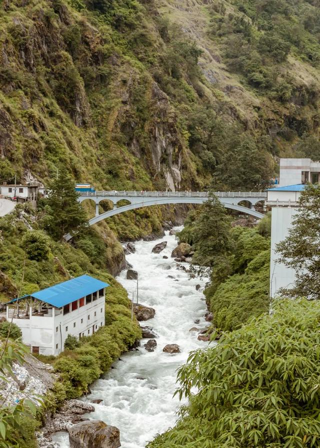 (中尼友谊大桥,跨越河流为麻章藏布;摄影师@胡澍)