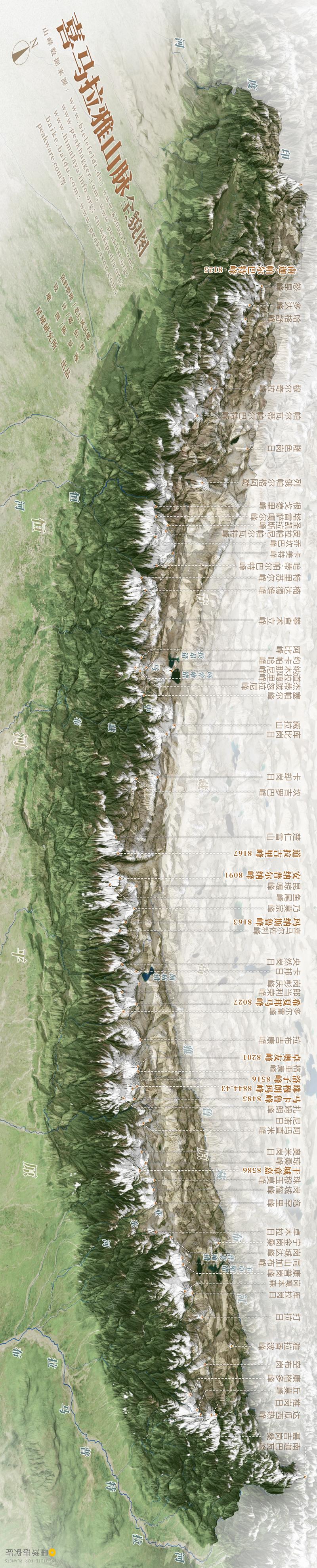 (喜马拉雅山脉全图;制图@郑伯容&陈景逸/星球研究所)