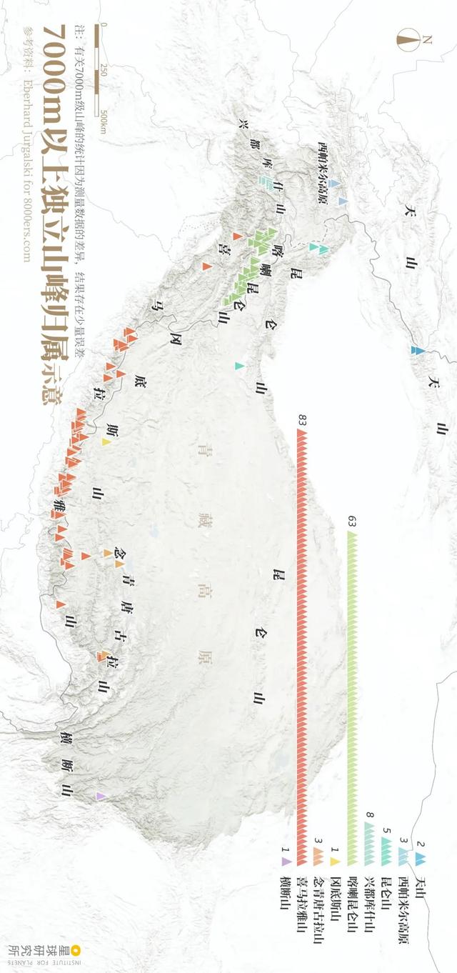 (请横屏观看,7000m以上独立山峰归属;制图@陈景逸&陈随/星球研究所)