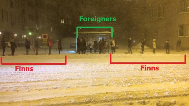 比如芬兰人等车的方式就是特殊的“芬兰式排队”;