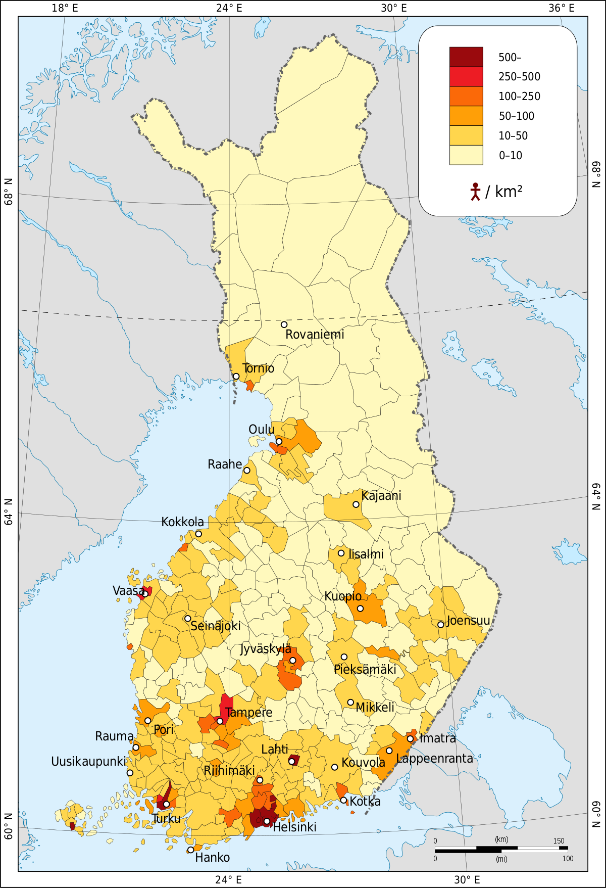 另外说到人口,芬兰约有550万人,而芬兰的国土面积有:33.8万平方公里,相当于他们的平均人口密度为16人每公顷。