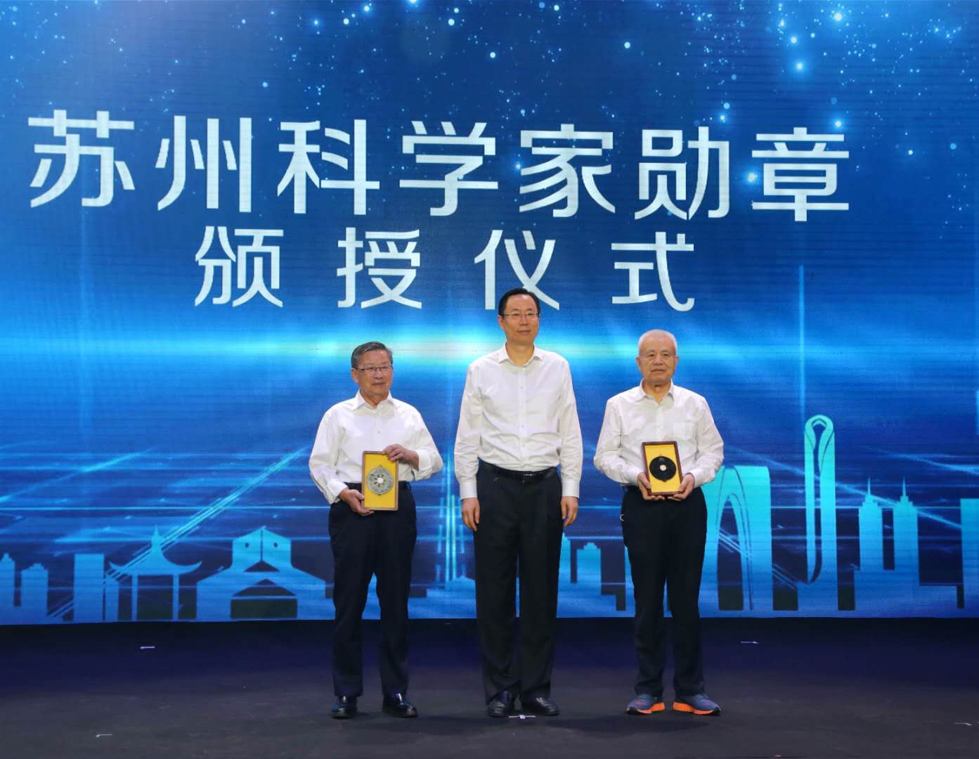 钱七虎院士(图右一)、阮长耿院士被授予首届苏州科学家勋章