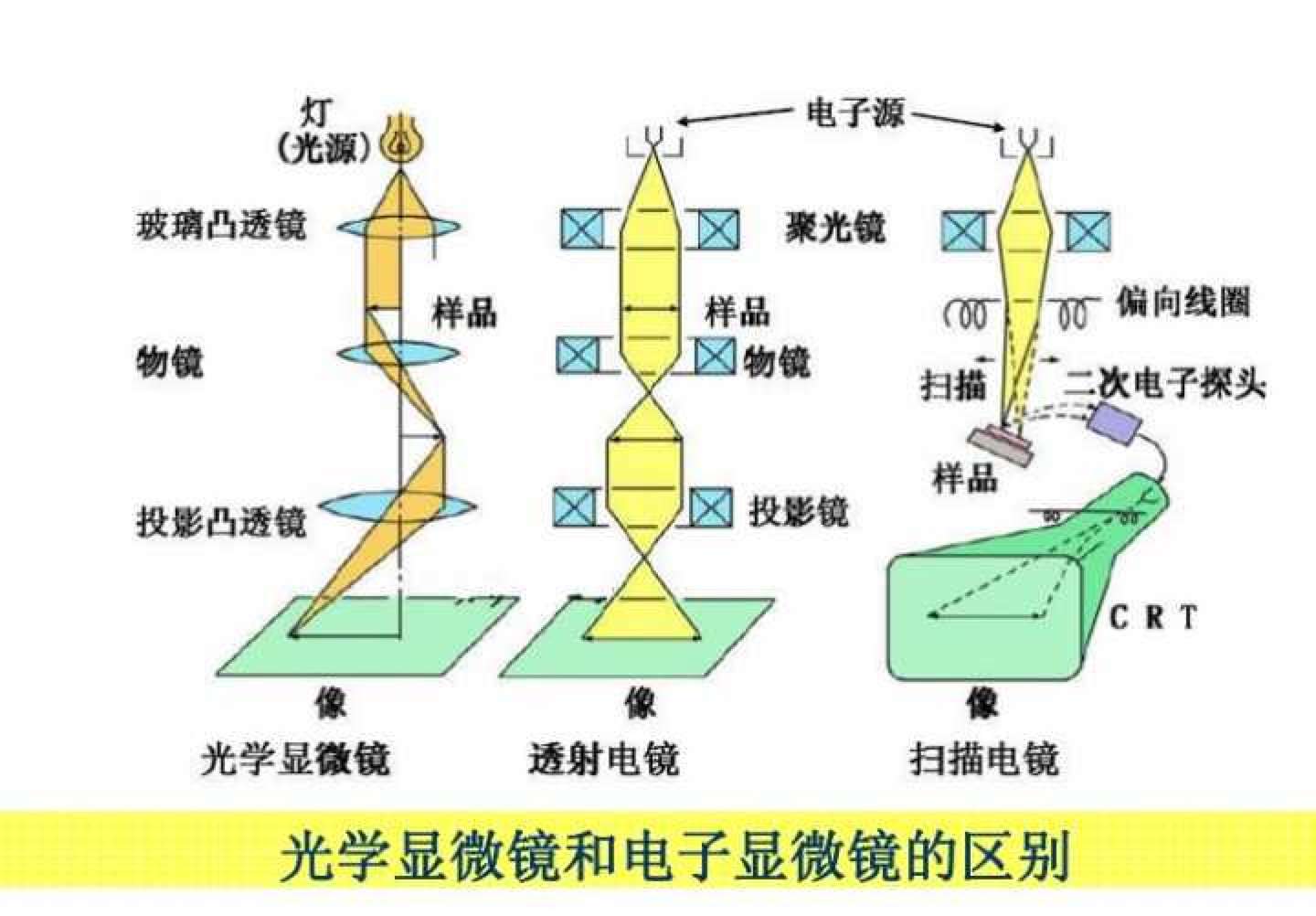 光学显微镜是以可见光为光源观测物体的,因此最高分辨率只能达到约200nm,而电子显微镜一般是用电子束扫描或透射的,电子束的波长随着能量(电压)加大而缩短,当电压为50~100kv时,波长约为0.0053~0.0037nm之间。