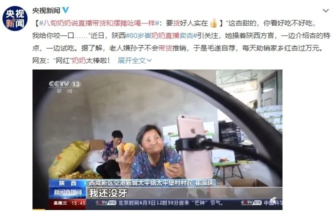 微博热搜:#八旬奶奶说直播带货和摆摊吆喝一样#