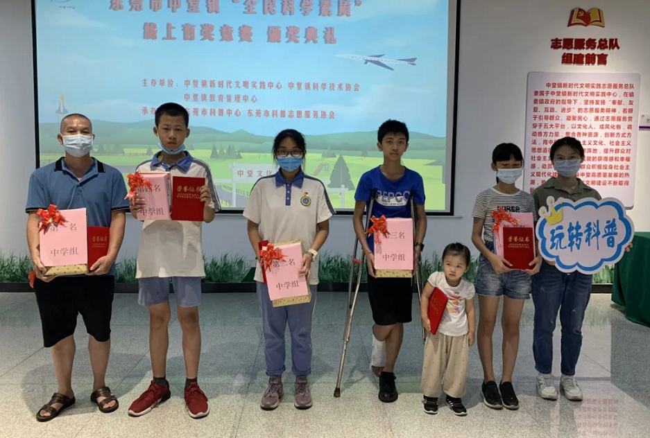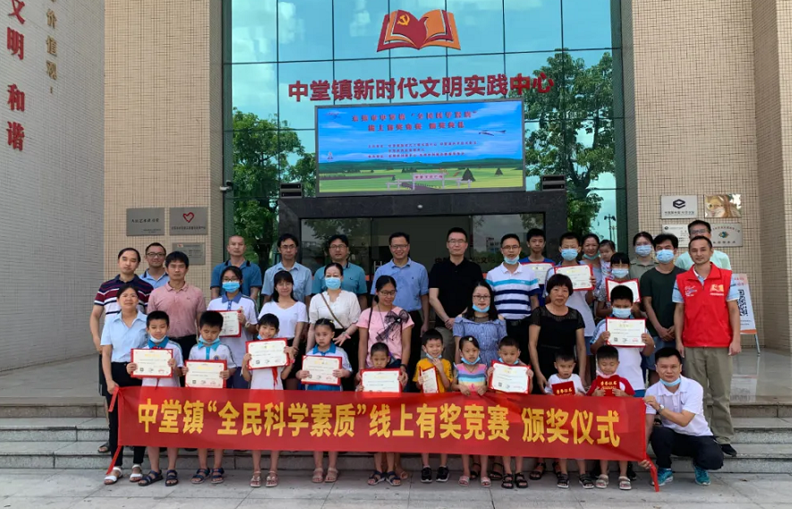 2020年7月19日上午,由中堂镇新时代文明实践中心、中堂镇科学技术协会和中堂镇教育管理中心联合主办的“全民科学素质”线上竞赛表彰大会暨优秀学生颁奖典礼圆满落幕。中堂镇科学技术协会主席李浩荣,东莞市科普中心主任房志坚,中堂镇创新驱动办主任黎柱声,中堂镇教育管理中心副主任莫峭文,中堂镇教育管理中心教研员张建辉,“全民科学素质大赛”三个参赛组别(幼儿组、小学组、中学组)前5名优秀学生及家长出席了本次颁奖典礼。