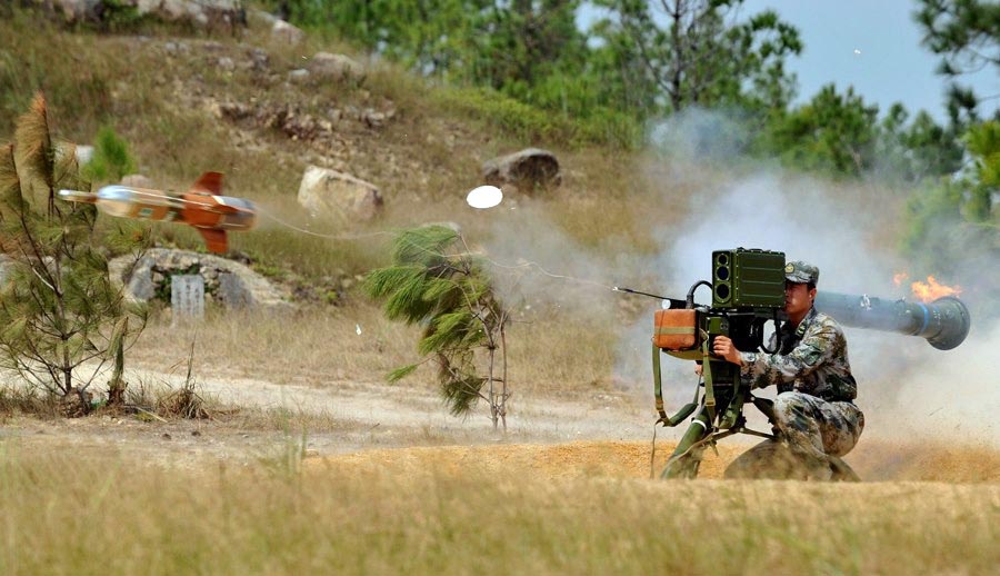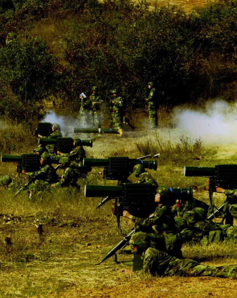 ▲ “红箭”8反坦克导弹发射训练,可以看到一具发射筒已经完全后抛