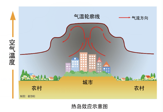 第三是城市热岛效应,对高温天气起到推波助澜作用。