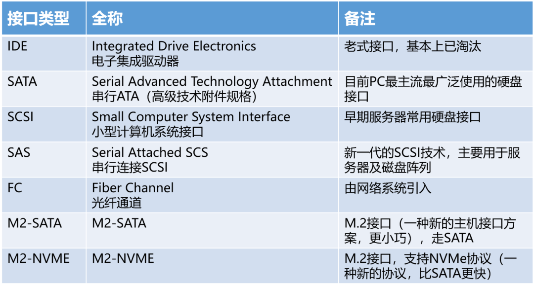 文件系统就像仓库管理员。作为用户,你不需要知道仓库里面到底是什么样子,只需要把货物交给他,他会以一个树形结构目录,登记这些货物。你来取的时候,只需要告诉他路径,他就会把货物交给你。文件系统有很多种类型,常见的有Windows的FAT/FAT32/NTFS(大家应该很熟悉),还有就是Linux的EXT2/EXT3/EXT4/XFS/BtrFS等。Windows系统下,通过对分区(卷)进行文件系统格式化,再分配一个盘符,我们就可以在“我的电脑”里看到可用的磁盘。Linux系统下,我们需要对逻辑卷进行文件系统格式化,然后执行挂载操作,也就能对存储空间进行使用了。除了内置存储之外,随着存储容量需求的不断增加,加上维护便利性的需要,计算机系统开始引入了外挂存储。也就是说,硬盘从计算机的内部,跑到了计算机的外部。