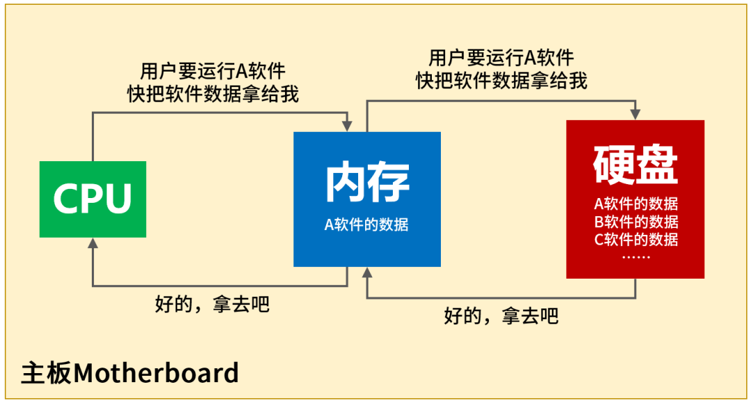 哈哈,没错,我们现在处于信息时代,每天都在和电脑、手机打交道。我们的工作和生活,已经完全离不开视频、音乐、图片、文本、表格这样的数据文件。而所有这些数据文件,都需要通过电子设备进行保存,这就是数据存储,简称存储。我们知道,计算机的三大核心硬件,分别是CPU(中央处理器)、内存(Memory)和硬盘(Hard Disk)。CPU负责运算,硬盘负责存储。而内存,是CPU和硬盘之间的桥梁。用于暂时存放CPU中的运算数据。绝大部分的台式机、服务器、手机,都是内置存储系统。也就是说,它们的硬盘安装在设备内部。以普通台式机为例,硬盘通过专用接口和数据线,连接在主板上,实现和CPU、内存的数据连接。