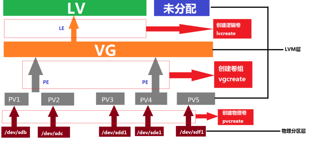 为了方便管理,我们可以将硬盘这样的物理块设备,分割成多个逻辑块设备。或者,我们也可以将多个物理块设备,组合成一个容量更大的逻辑块设备。底层的相关技术和工具,包括RAID(大家可能比较熟悉)、JBOD、卷管理系统(Volume Manager)。Windows的卷管理系统,就是它自带的磁盘管理工具。而Linux的,是大名鼎鼎的LVM(Logical Volume Manager,逻辑卷管理)。在Windows中,磁盘分为基本磁盘和动态磁盘。默认情况下,用户用的都是基本磁盘。一个基本磁盘可以划分为多个分区,分区类别包括主分区、扩展分区和逻辑分区。主分区是硬盘的启动分区,我们常说的“C盘”就是硬盘上的主分区。MBR分区表可以划分出4个主分区。如果使用GPT分区,可以管理128个主分区。除去主分区以外,硬盘剩下的容量就被认定为扩展分区。扩展分区不能直接使用。扩展分区可以分成一个或若干个逻辑分区,也就是我们的“D盘”、“E盘”等。动态磁盘是基本磁盘的升级模式。在动态磁盘中,分区叫做卷。卷的出现,就是为了便于对多硬盘进行管理。简单来说,动态磁盘可以将不同硬盘分到一个卷。假如你手中有160G和250G硬盘各一块,如果想划分90G和320G的分区,就可以借助动态磁盘来完成。动态磁盘里面的卷,又分为简单卷、跨区卷、带区卷、镜像卷、RAID-5卷。限于篇幅,就不做具体介绍了。基本磁盘里的分区,现在也被微软改叫为卷。其实LVM和动态磁盘的思路差不多的,也是把物理空间变成逻辑空间。首先,物理存储介质进行初始化,变成物理卷(PV,physical volume)。然后,一个或多个物理卷组成一个卷组(VG,Volume Group)。创建卷组之后,再创建逻辑卷(LV,logical volume)。好了,不管是Windows还是Linux,逻辑卷都有了,是不是可以直接使用它们啦?不行,还差一步。那就是文件系统(File System)。
