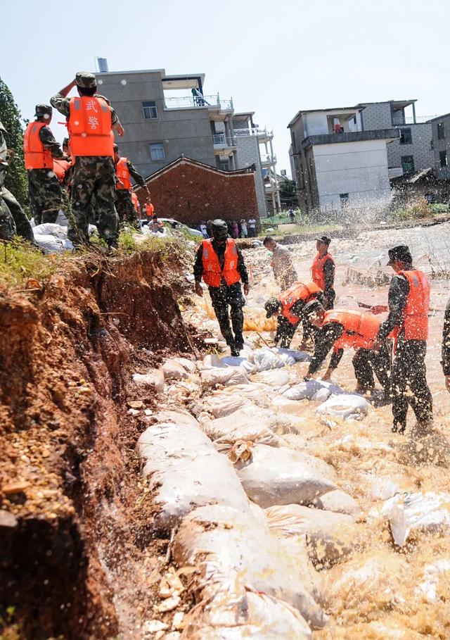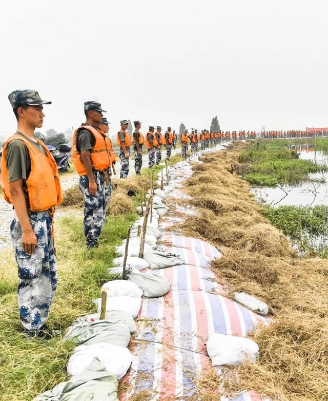 年轻的战士们冲上堤防,火热的青春在泥浆和洪水中涌动,混合着土黄色的救生衣红,成为这个夏季最让人安心的色彩。