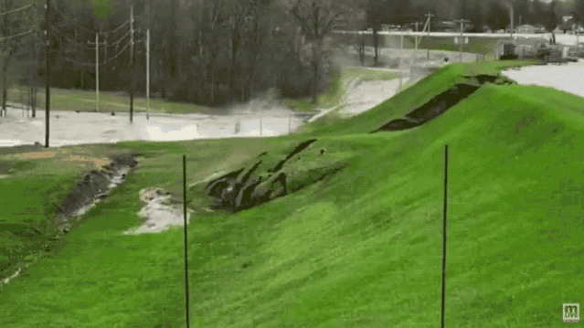 渗流引起的拦河坝滑坡 | 今年5月20日,美国密歇根州Edenville土坝在被长期浸泡后,因渗流剧烈引发滑坡,最终导致溃坝,下游多处城镇受灾。该坝建于1925年,是没有防渗设计的均质土坝,技术上早已落后。图源@Lynn Coleman / MLive / Earther,文献[11-12]