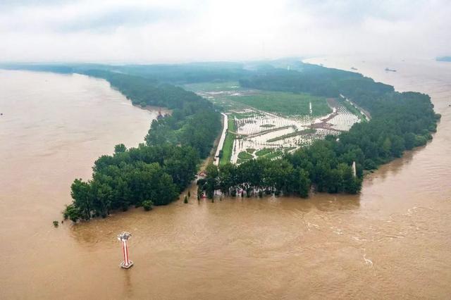 洪水环绕南京八卦洲 | 7月18日,长江南京段洪水创历史新高,全市启动一级响应。八卦洲是长江中的一个岛,现已被洪水围困。图源@人民视觉