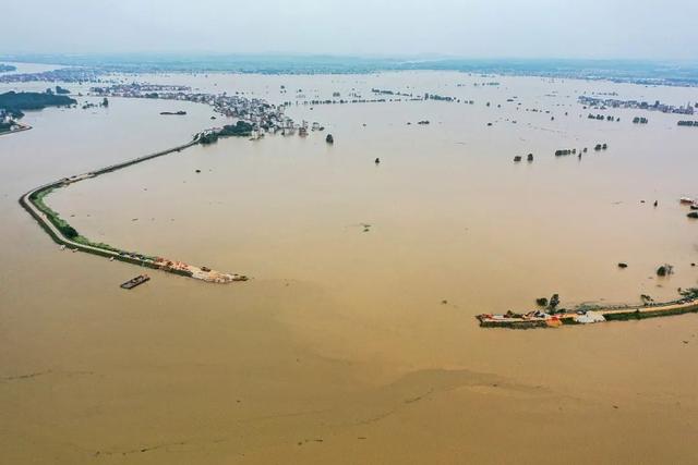 江西鄱阳县昌洲乡西河的决堤现场 | 抗洪难,低等级堤防抗洪更难。图源@人民视觉