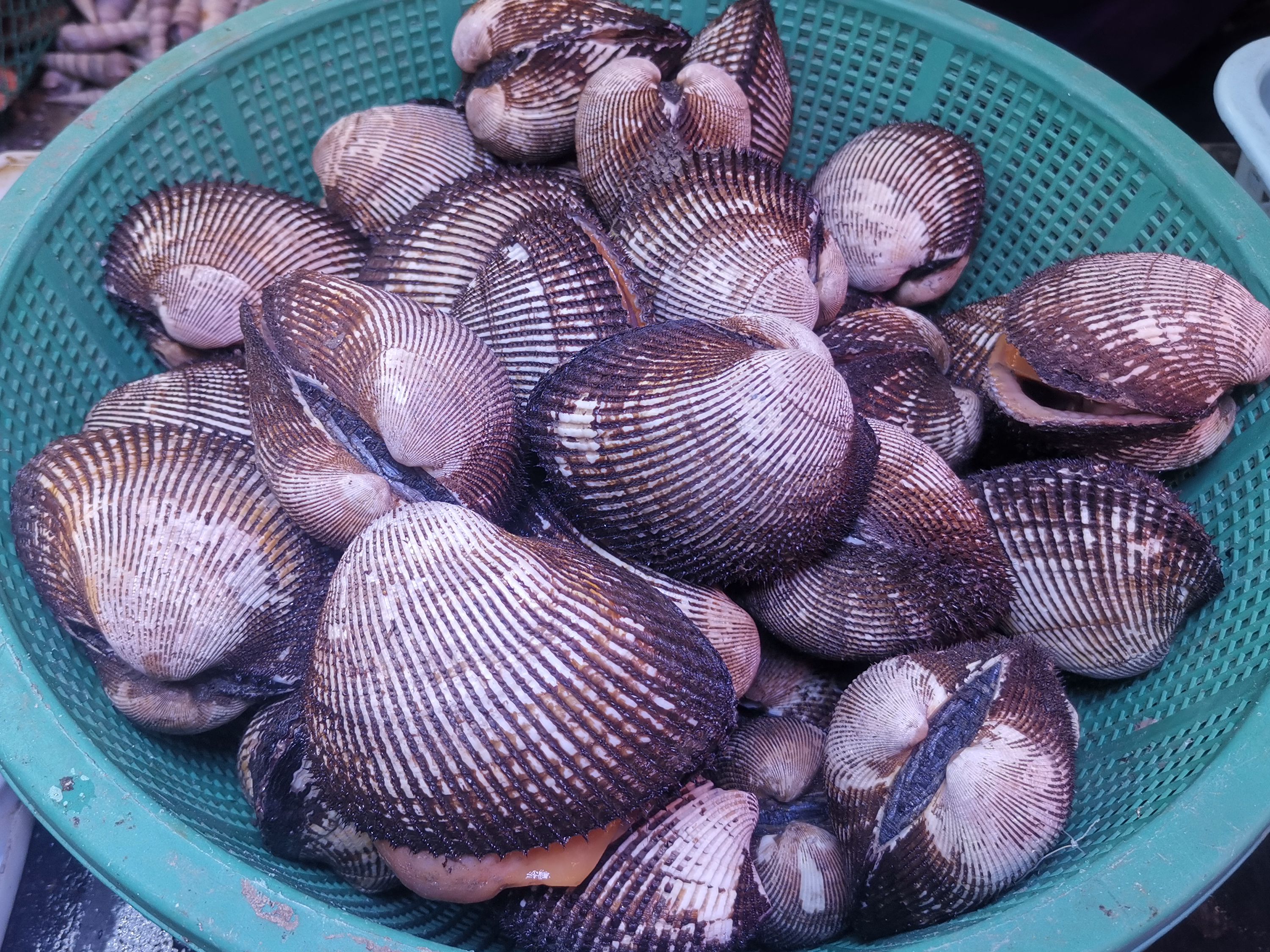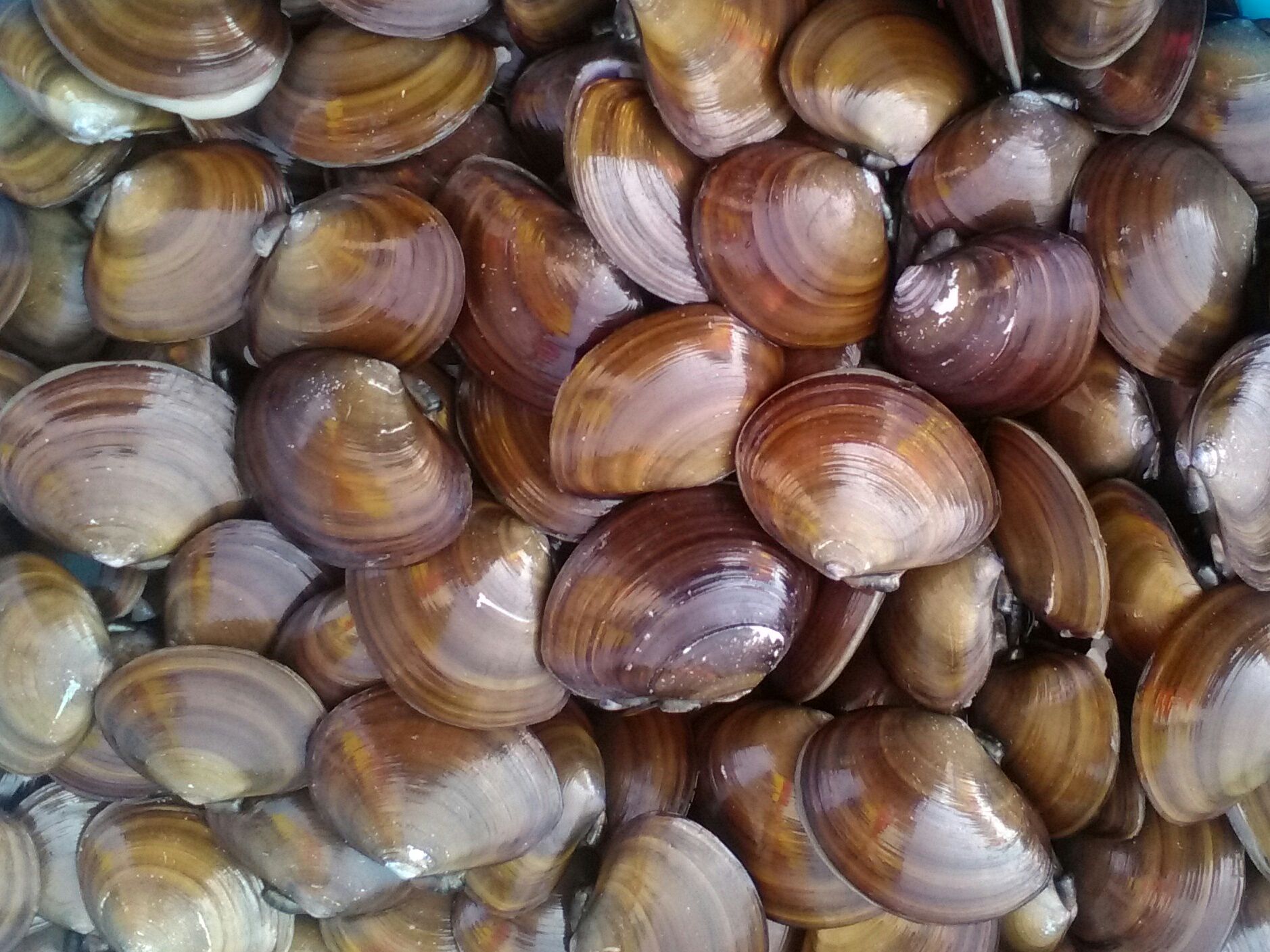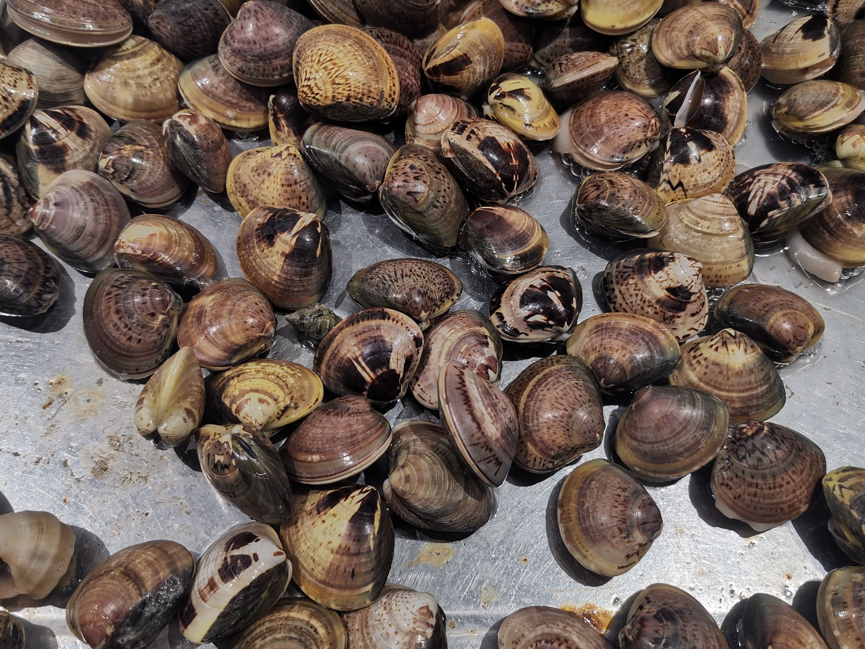 11、橄榄血蛤/Nuttallia olivacea,也叫紫彩血蛤。贝壳近椭圆形或圆形,壳面光滑,呈橄榄、浅棕或紫棕色,有光泽。据说不太好吃,少见,仅在即墨乡下集市遇到一次。