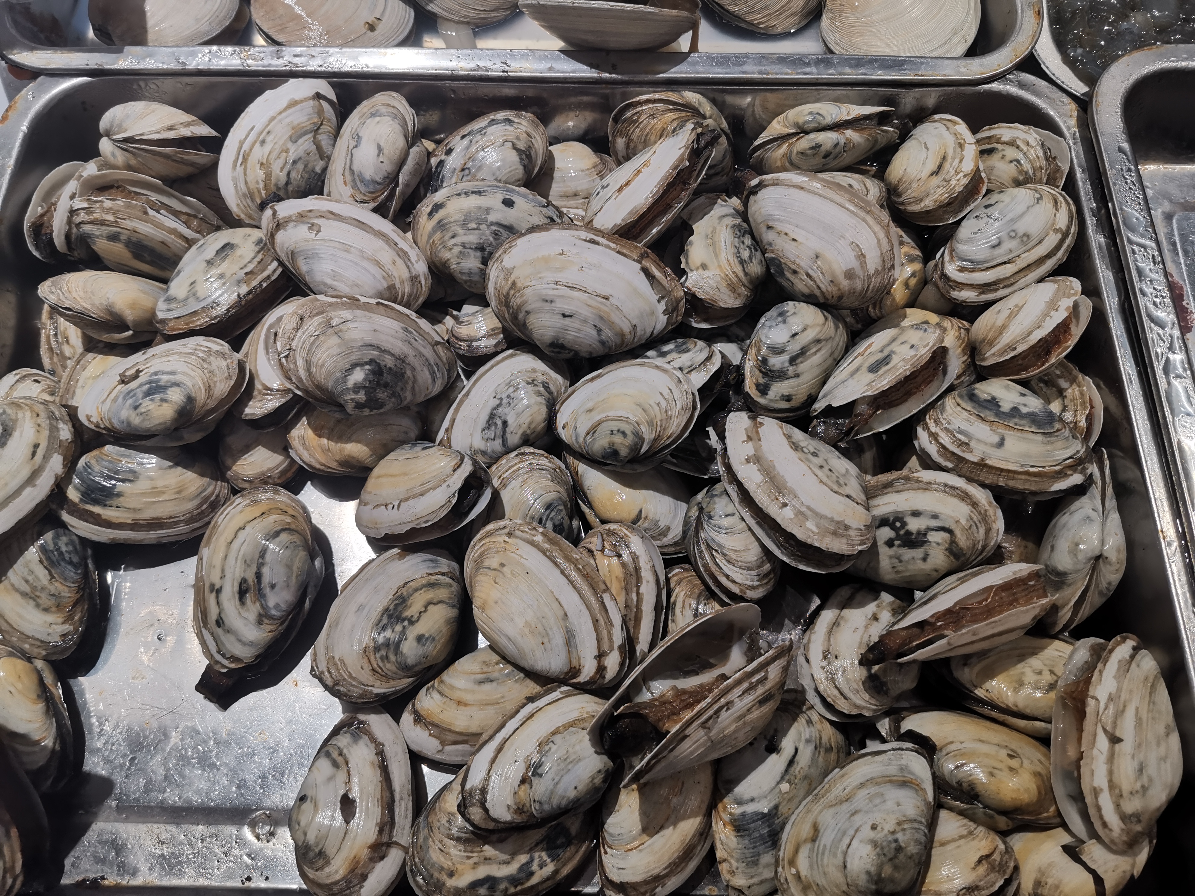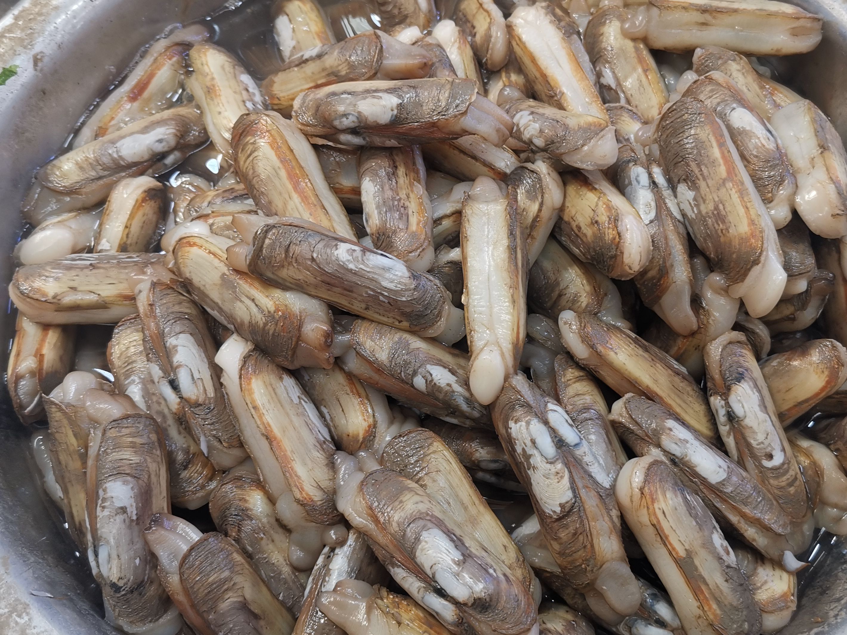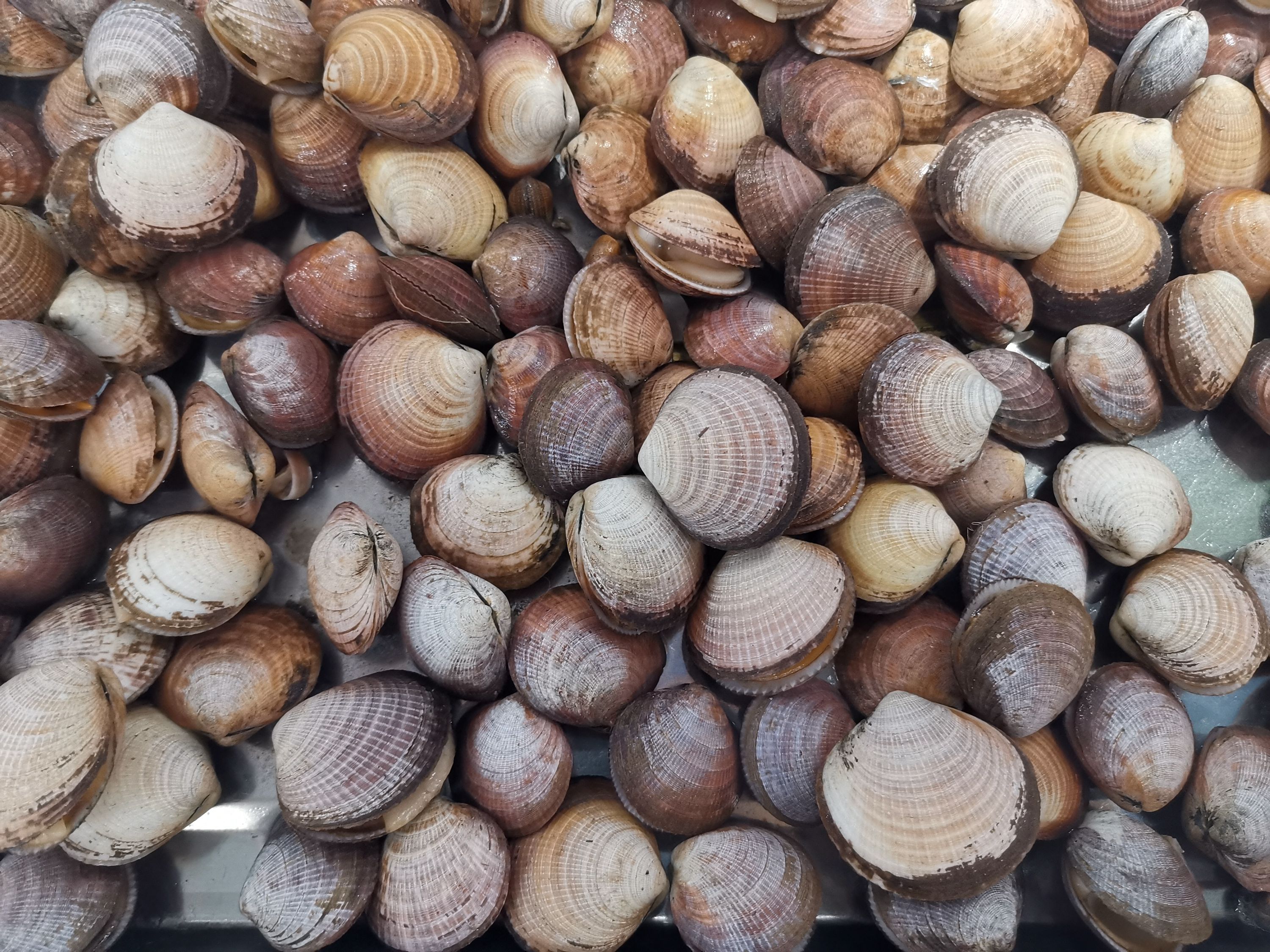 11、橄榄血蛤/Nuttallia olivacea,也叫紫彩血蛤。贝壳近椭圆形或圆形,壳面光滑,呈橄榄、浅棕或紫棕色,有光泽。据说不太好吃,少见,仅在即墨乡下集市遇到一次。