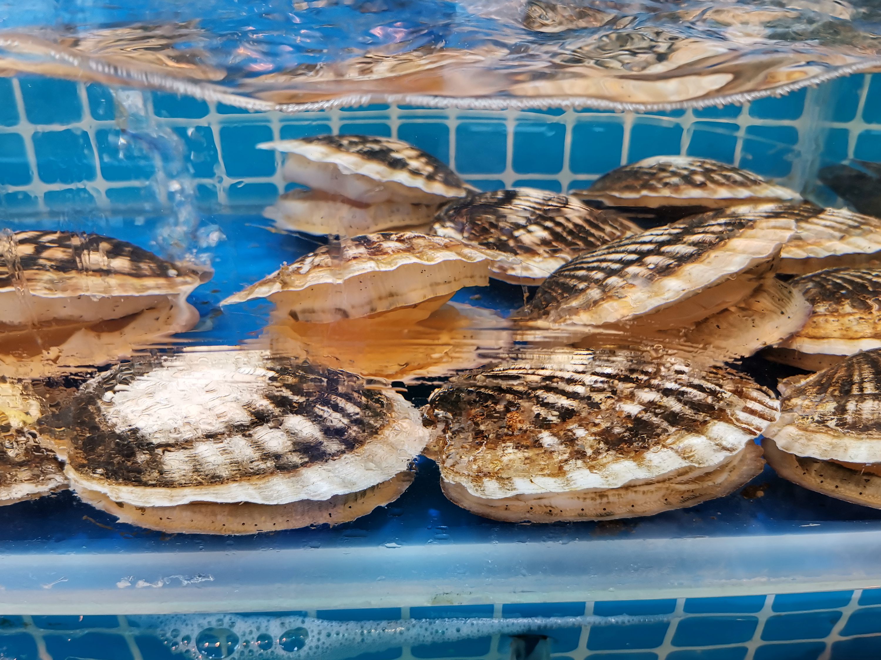 17、虾夷扇贝/Mizuhopecten yessoensis,也叫夏威夷贝,实则和夏威夷毫无关系,《中国动物志》称之为虾夷盘扇贝。主要生活于冷水区域,山东和辽宁均有引进养殖,著名的獐子岛应该就有这种,再往南基本活不了。扇贝中的巨无霸,壳高可超过20厘米,这种气势磅礴的个头,才值得按个做成蒜蓉粉丝蒸扇贝。