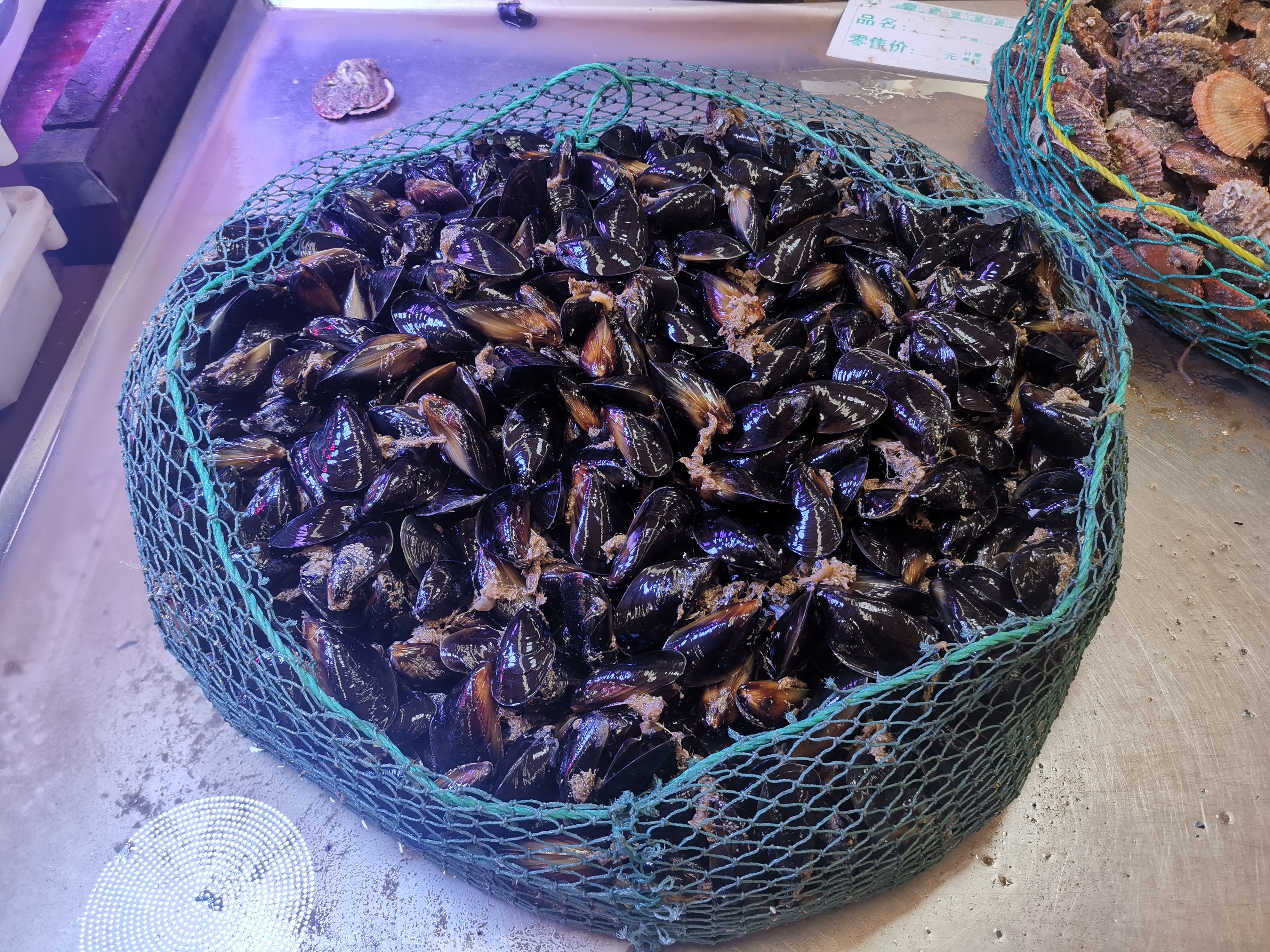 注:紫贻贝为黄海优势种,此外还有厚壳贻贝/M. coruscus。贝壳比紫贻贝细长、厚重,但在外行看来恰似六耳猕猴和孙悟空,实难分辨。我故意选了一张不那么近景的照片,正是试图蒙混过关......吾生也有涯,而知也无涯,以有涯随无涯,殆矣。会吃就行了,分那么清楚干嘛。