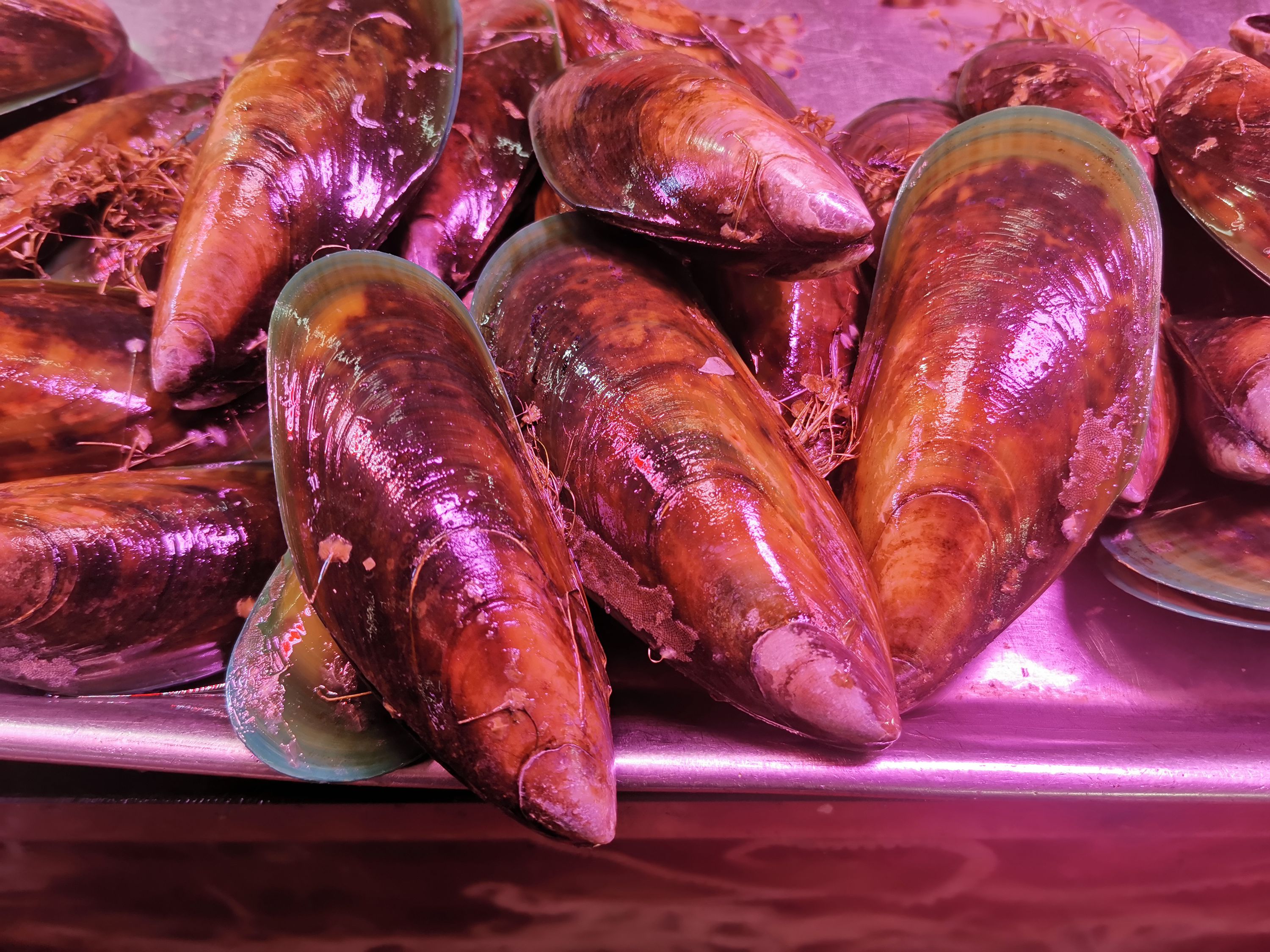 注:图三十三摄于营口路农贸市场,30元/斤,起初以为是南方俗称“青口”的翡翠股贻贝/Perna viridis;后来和一些网友讨论过,大部分觉得这些贻贝和翡翠贻贝有诸多不同,还是倾向于新西兰贻贝。李昂博士表示要测个DNA才能确定,我这里暂且从众。
