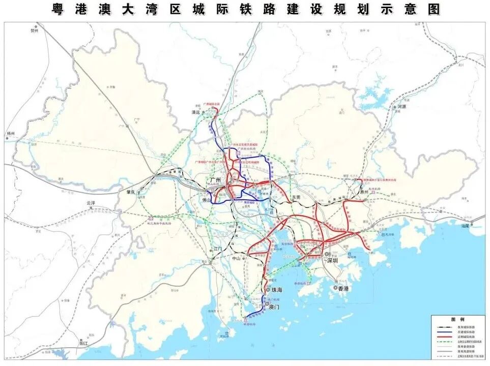 《规划纲要》提出,构建以高速铁路、城际铁路和高等级公路为主体的城际快速交通网络。编制粤港澳大湾区城际(铁路)建设规划,完善大湾区铁路骨干网络。