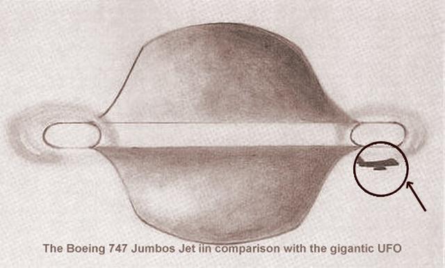 另据日航班机的其他机组描述,起先是两个不明飞行物,快速靠近飞机并贴近飞行一段时间,其灵活性似乎无视惯性和引力存在,后又高速远离,最终消失在地平线下!同时机长注意到远处有一个发出暗淡光芒的另一个飞行物,并且在波音747雷达也发现了这个飞行物,这个飞行器非常大,据机组目测超过航母两倍大小。
