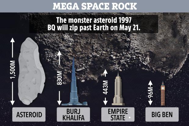 美国宇航局警告,一颗比帝国大厦还要大三倍的小行星将于2020年5月21日掠过地球,这颗编号为 1997 BQ的小行星速度大约是11千米/秒,它是天鹅彗星通过近地点后经过地球的第一颗小行星!当然这并不是我们关注的对象,而是NASA警告它未来的轨道可能会与地球靠得很近,对地球威胁极大!