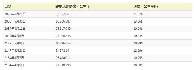 未来160年内最接近地球的时间
