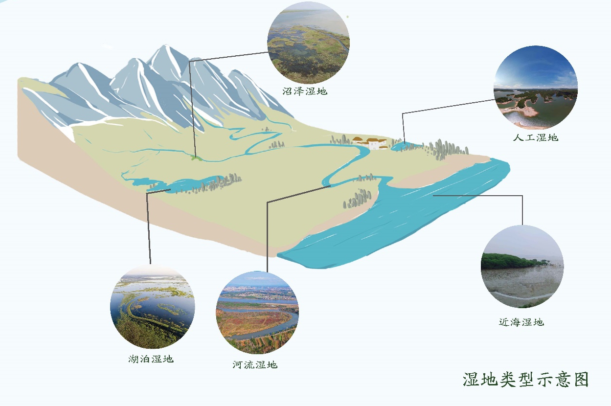 江西湿地共有4类8型,分布广泛。自然湿地包括河流湿地、湖泊湿地、沼泽湿地;人工湿地包括库塘、水产养殖场等。