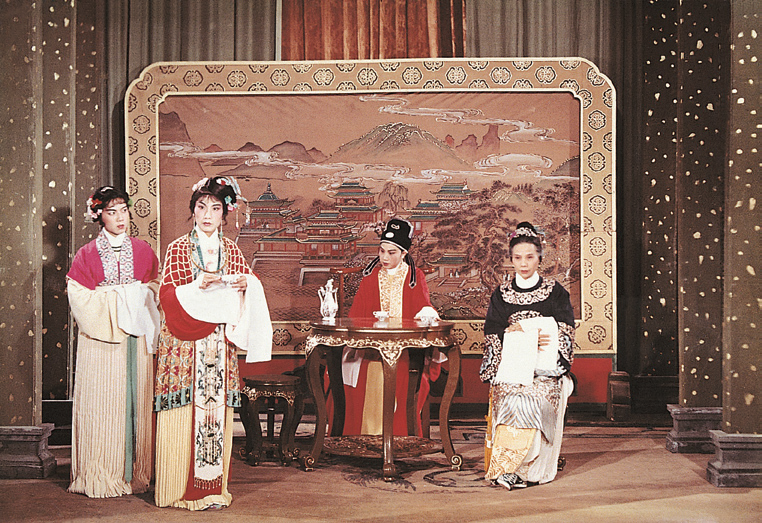 当时上海的一些年轻的戏迷们还组织了大大小小的戏迷俱乐部,开展各种联谊活动,组织排练业余演出。更重要的是,一大批知识女性成为越剧的票友,积极为越剧的革新献言献策。在女戏迷群体中先后走出了越剧的第一位女编剧成容和第一位电台播音员陈疏莲。一代代中产阶级女戏迷的加入,提高了越剧的社会地位,也给了越剧继续改良的动力。· 一位越剧装扮的戏迷。越剧化妆学习了电影、话剧化妆柔和自然的长处,基本不用其他戏剧脸谱化的化妆1930 年代末,越剧骨子老戏,如《碧玉簪》《珍珠塔》《双珠凤》《三看御妹》《孟丽君》《沉香扇》《玉蜻蜓》,多数都已形成。到了 40 年代,女演员们以反礼教的爱情主题搭配新颖的舞台美术和流畅的表演风格,又陆续创作出了以梁祝故事、红楼故事、沙漠王子等为代表的 100 多部越剧新作,终于迎来了越剧的大繁盛时代。· 越剧《西厢记》袁雪芬饰崔莺莺(左二)、徐玉兰饰张生(右二)、吕瑞英饰红娘(左一)、张桂凤饰老夫人 1955 年