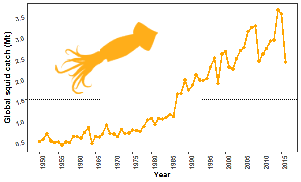 麻辣铁板鱿鱼,看一眼就口水直流。图片:图虫创意 鱿鱼大多活跃在世界范围内广阔的热带到温带水域。按照分布海域可分为沿岸种(Nertic squid)和远洋种(Oceanic squid)。沿岸鱿鱼指的是生息在近海地区的鱿鱼品种,远洋种顾名思义则是生息在大洋的鱿鱼,世界上总的鱿鱼产量,主要是靠几种远洋鱿鱼支撑的。 会飞的鱿鱼 鱿鱼,古代亦称为柔鱼,属于头足纲十腕总目管鱿目(枪形目)下的物种。看似张牙舞爪的鱿鱼们,普遍是短命的海洋生物,仅有约1~2年寿命,多数个体在完成繁殖交配后便会黯然消逝在海洋中,完成生命之旅。鱿鱼靠捕食各种鱼类、甲壳类、甚至是其他鱿鱼同胞完成生长过程,同时它也是鲨鱼、鳕鱼等其它海洋生物的可口佳肴。 鱿鱼拥有处世三宝:墨水、变色和触手。在遭遇危险情况下,鱿鱼能将储存在墨腺中的黑色素快速排入外套膜和周边环境,起到混淆捕食者视觉的作用,甚至可以麻痹部分捕食者的化学感受器,干扰其捕食行为。 通过喷出一团墨汁分散捕食者的注意力,给自己创造逃生的机会。动图:The Fresh Salt/Youtube 分布在外套膜皮肤表面的色素细胞让鱿鱼能根据周边环境变化起到伪装目的,而且还能通过变化体表颜色、图案、频率而起到沟通作用。鱿鱼的十只触手不仅能用来捕食食物,也是其完成防御、交配等其它行为的重要工具,触手结合吸盘,可以死死缠绕住猎物并将其绞杀,许多体型相对较大的猎物同样不在话下。 部分鱿鱼还演化出特殊机能,比如市场上常见的太平洋褶柔鱼(Todarodes pacificus),其实可以像飞鱼一样离开水面短暂飞行。鱿鱼多集群生活,尤其在繁殖季节,集群数量和密度更高。 正在滑翔的太平洋褶柔鱼。图片:adlayasanimals.wordpress.com 如何钓鱿鱼? 目前世界范围内,得到大宗利用的远洋鱿鱼包括以下几个品种:巴氏鱿鱼(Ommastrephes bartrami)、 阿根廷鱿鱼(Illex argentinus)、新西兰双柔鱼(Nototodarus sloani)、秘鲁/赤道鱿鱼(Dosidicus gigas)、鸢乌贼(Sthenoteuthis oualaniensis)、太平洋褶柔鱼(Todarodes pacificus)等,其中大多数品种也是我国远洋鱿鱼渔业的主要利用品种。 体型巨大的秘鲁鱿鱼。图片:Fish guy/Wikimedia Commons 如何获取远洋鱿鱼?最常见的便是钓和拖,其中钓为主流。这种方法主要是通过机钓和人工钓的方式,用假饵引诱鱿鱼上钩。而拖网,则是通过对白天躲藏在海底休息的鱿鱼群进行集中捕获,还有少部分以灯光围网等其他方式捕获鱿鱼。 几类鱿鱼捕捞作业中,钓鱿鱼的方式应用得最广泛,这种方式渔获量高、作业方式对环境友好、渔获物品质也高,逐渐成为公海鱿鱼捕捞的绝对优势渔法。 捕获鱿鱼的钓具叫菊花钩,一种让人看了有点痛的密集U型刺钩,菊花钩的上方有发光标记物用来吸引鱿鱼。将渔具放置到鱿鱼分布的水深后,通过上下提动鱼线,模拟鱼饵的活动吸引鱿鱼上钩。 捕捞鱿鱼的菊花钩,依据鱿鱼大小差异钩也大小不同。图片:jsmfishing.com 一只被钩获的鱿鱼。图片:The Fresh Salt/Youtube 无论以哪种方式捕获的鱿鱼都会在甲板上进行前处理,小规格的排列入盘冷冻,成板入袋;大规格品种进行肢解,之后分类冷冻包装。这些远洋鱿鱼在运往国内后,根据鱿鱼品质和市场需求,有的加工成鱿鱼丝或鱿鱼干等食品,有的直接解冻进入国内海鲜市场售卖,有的则被采购进入小吃店、海鲜大排档,进入食客口中。 鱿鱼被加工成鱿鱼丝。图片:图虫创意 鱿鱼能好怎教学 鱿鱼几乎全身都是宝,除去常吃的鱿鱼须和躯体外,鱿鱼内脏中的肝脏、性腺同样也可食用。 鱿鱼是日料刺身的重要角色,比如常见的太平洋褶柔鱼,身体部分通过剥皮细切,成为面一样的细丝,送入口中可品味到纤细鱿鱼肉的鲜甜嚼劲,鲜活鱿鱼触须还能让你体会到喉部或口腔被吸盘吮吸的感觉。 鱿鱼刺身。图片:图虫创意 如果想做熟了吃,除了日常的煮、烤、炒的做法外,鱿鱼塞饭、酒糟鱿鱼等非主流料理也能让鱿鱼美味以独特的方式进入口中。鱿鱼的内脏是不能错过的美味,鱿鱼肝在日料中是生食材料之一,也可发酵后制成切片;鱿鱼性腺因其煮熟富含弹性胶质,在一些地区作为特色菜出售;鱿鱼墨不仅是传统西班牙墨汁炒饭、墨汁意面必不可少的原料,也是许多地方生食鱿鱼的蘸料,甚至还可制成黑冰淇淋。 墨汁意大利面。图片:图虫创意 但并不是所有的鱿鱼都适合做成各种菜肴,部分远洋鱿鱼品种,如秘鲁鱿鱼,本身肉质含酸量高,直接食用口感呈苦味,需经脱酸工艺等前处理,才能够继续广泛加工利用。不同品质的鱿鱼适合加工、制成不同的食品类型,一般而言,单价高的远洋鱿鱼多作为鲜食直接利用,单价低的品种则要加工以提升其附加值。 怎样才能保卫鱿鱼资源? 同其它鱼类等海洋资源一样,鱿鱼资源并非取之不尽、用之不竭,但好在它生命周期短,资源再生速度快。 常见的鱿鱼资源管理方式是保留一定量的产卵群体、保护产卵场及觅食栖息地,这样能确保它的繁衍种群不被捕获殆尽,从而实现资源的可持续利用。 粮农(FAO)发布1950-2015的全球鱿鱼捕获量数据,可以看出,年间鱿鱼的捕获量波动比较大,近年来也有锐减迹象。图片:R. Boenish/edf.org 鱿鱼资源还有一个其他大多数海洋资源不具备的特点,其资源量的变动,与海洋环境(水温、洋流等)因素的影响密切相关,有时在一些渔业管理较为缺乏的地方,历经数年的充分甚至过度捕捞后,由于气候条件适宜,翌年鱿鱼资源量反而有回升的迹象;