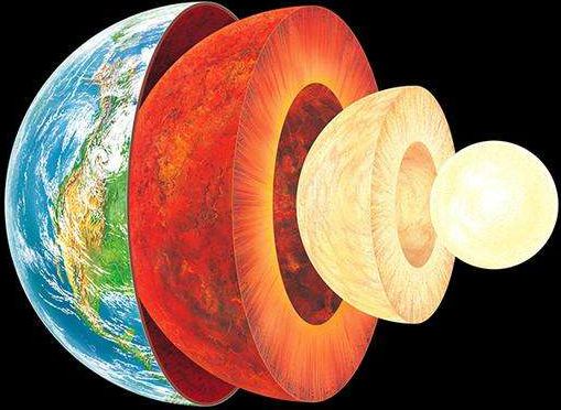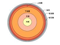 地核又分为外地核和内地核两部分。外地核的物质为液态,内地核现在科学家则认为是固态结构。外地核深2900km至5120km,内地核深5120km至6371km。如图3所示。