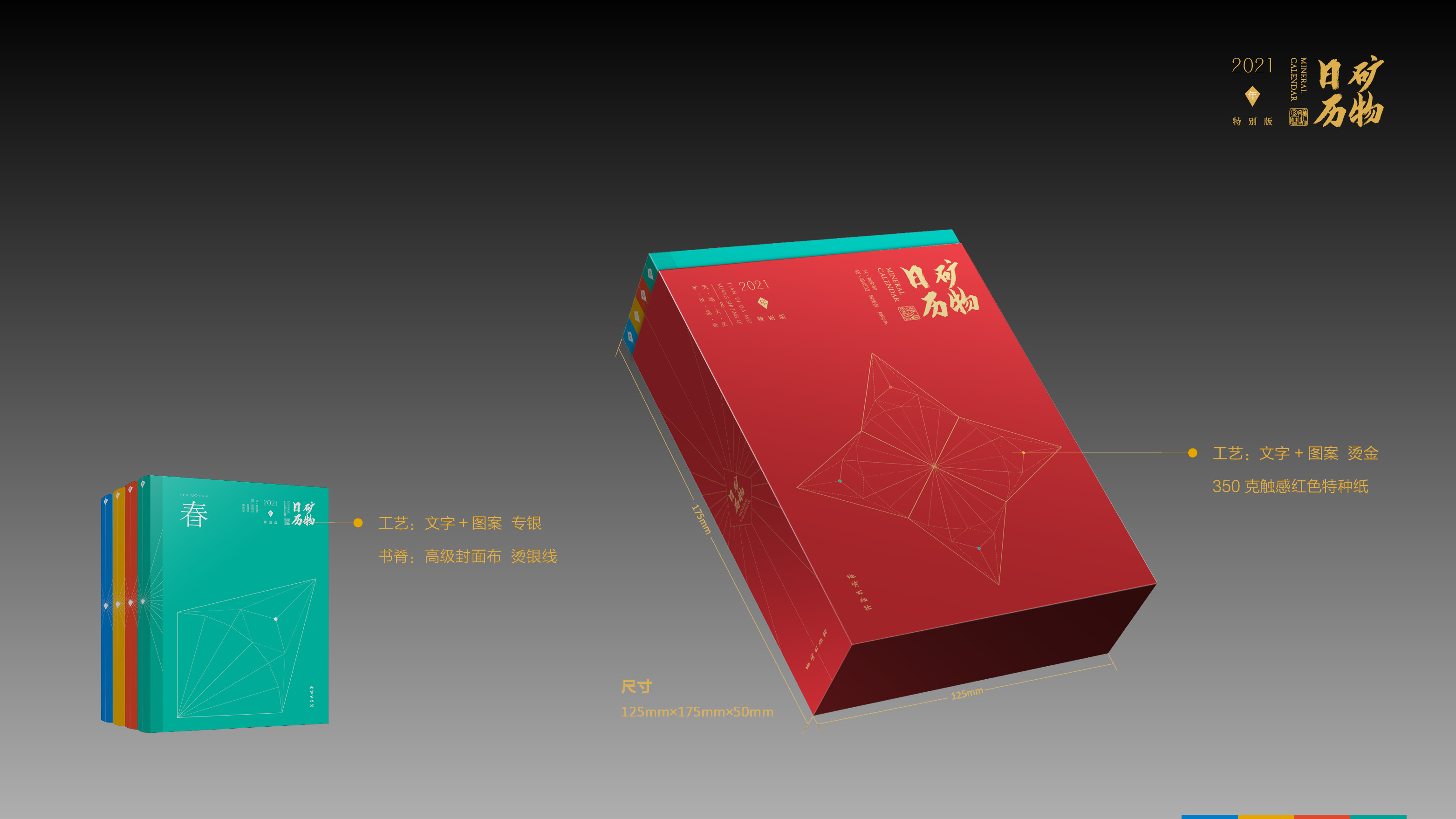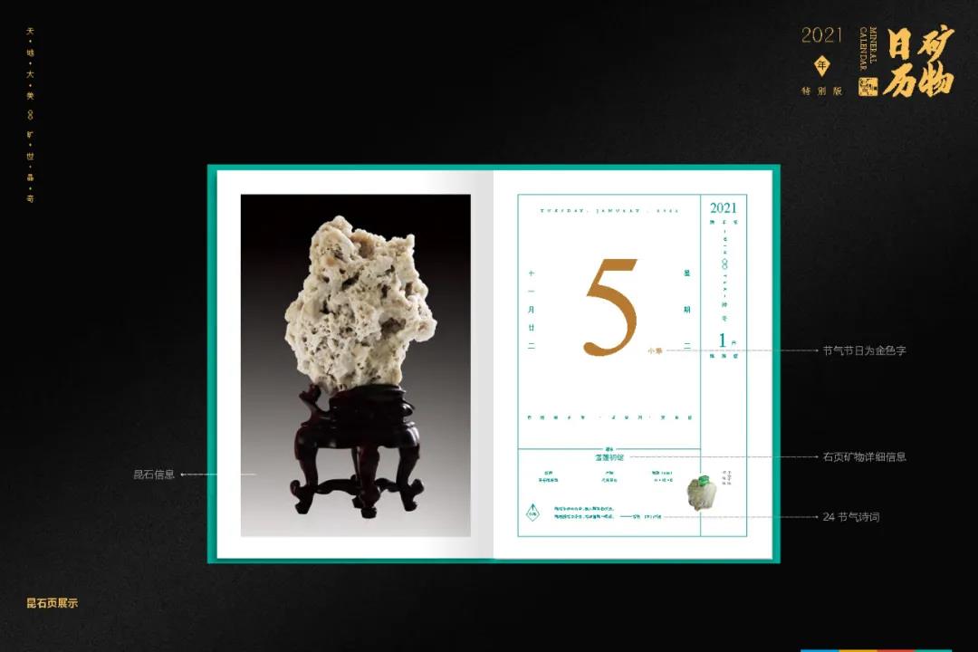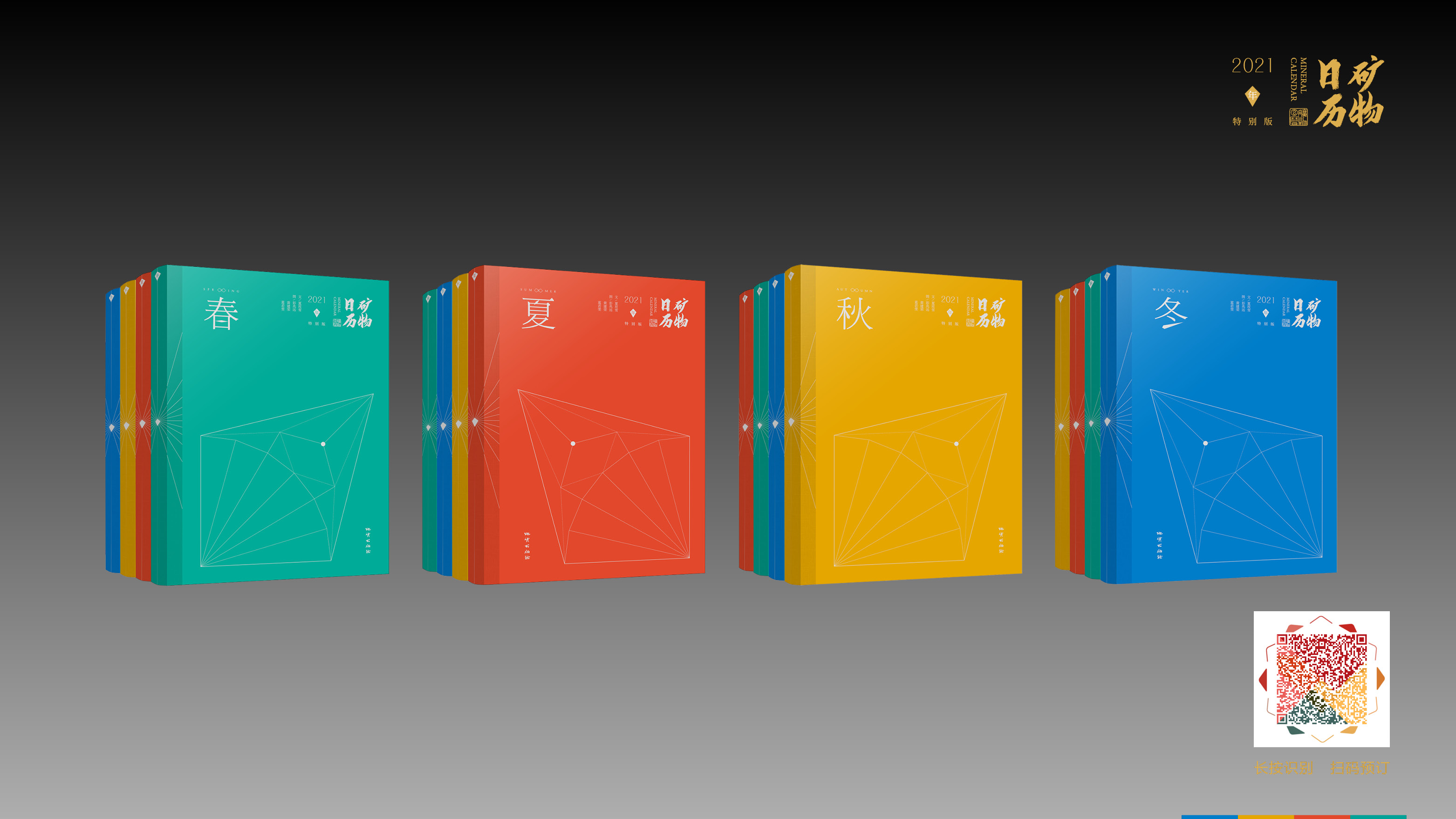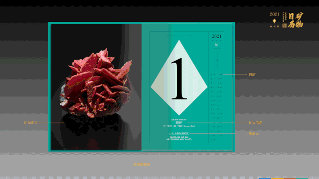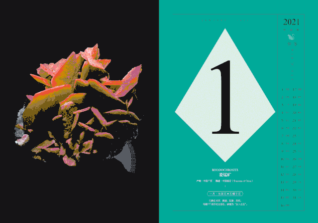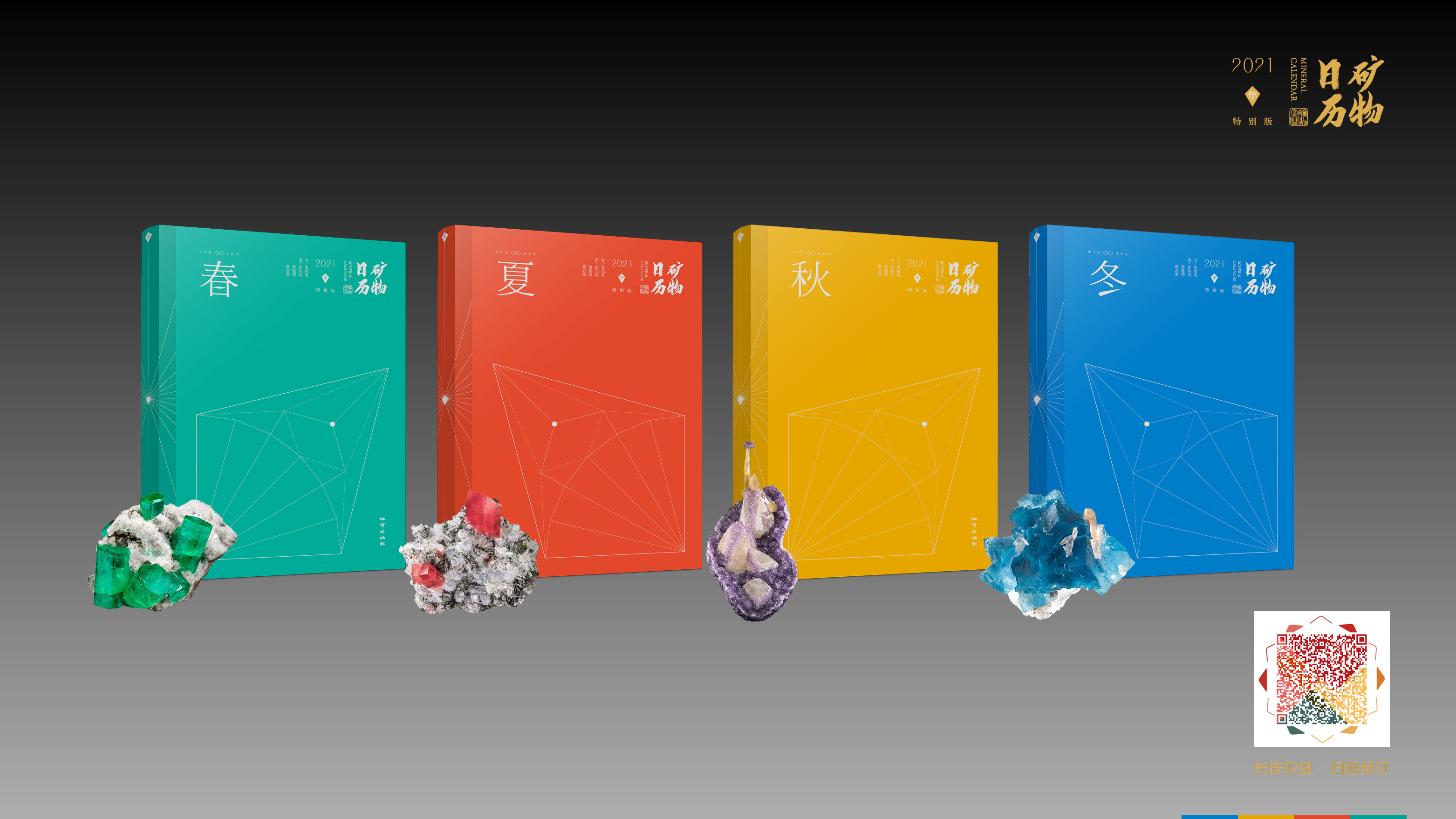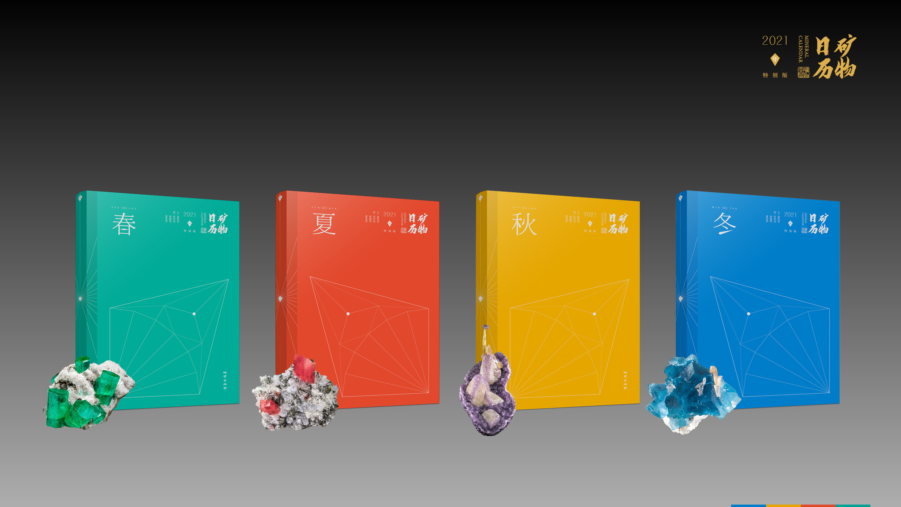 《矿物日历·2021年特别版》整体设计“以钻石的晶形结构为基本元素,以祖母绿、菱锰红、自然金、坦桑蓝四种颜色为四季颜色”延展设计,既体现了主题,又体现了矿物的美。《矿物日历·2021年特别版》为您呈现亿万年的地球瑰宝,感受大自然的神奇魅力;彰显独特品位,成就幸运人生;聆听天地密语,记录美好时光。
